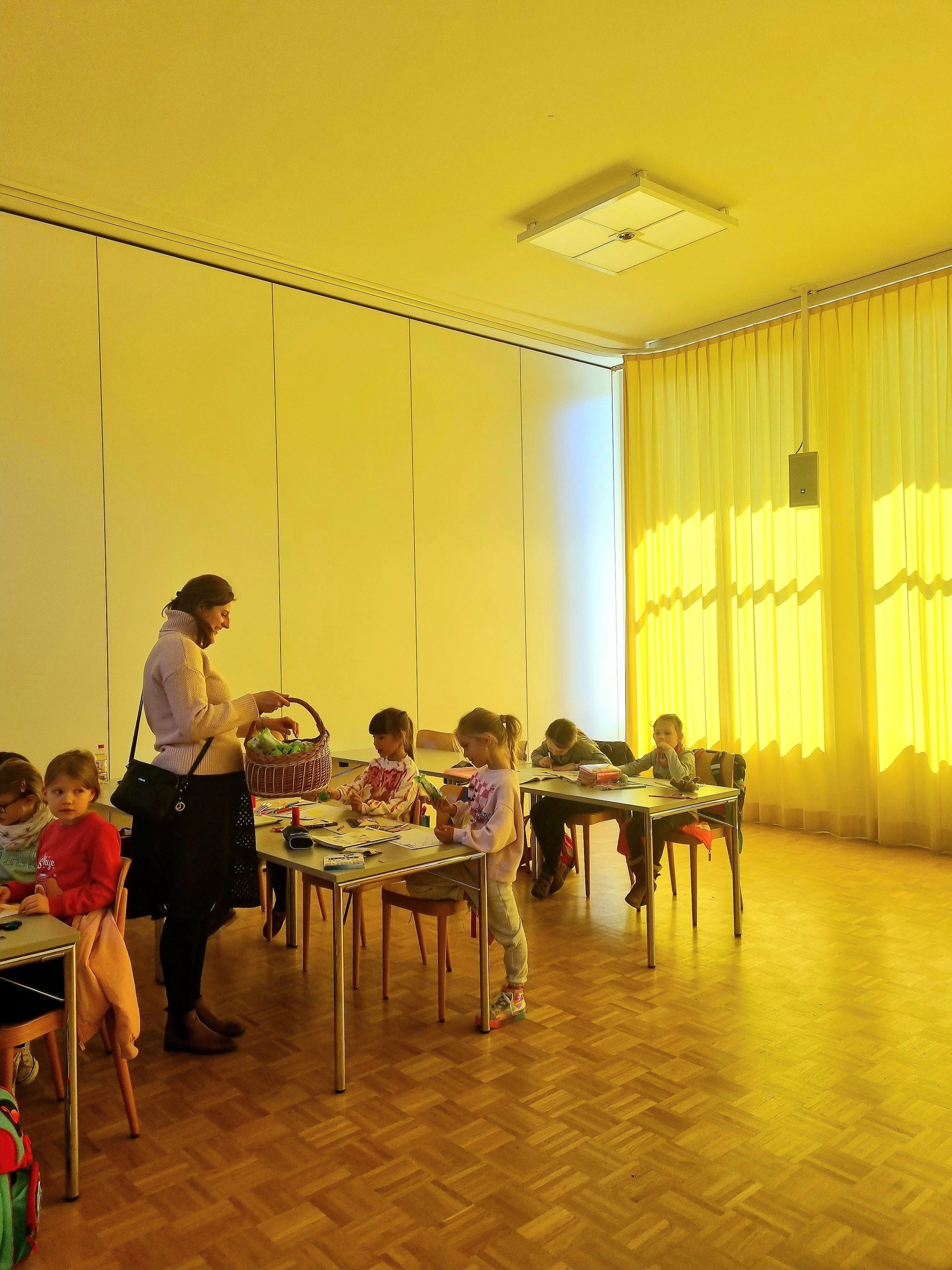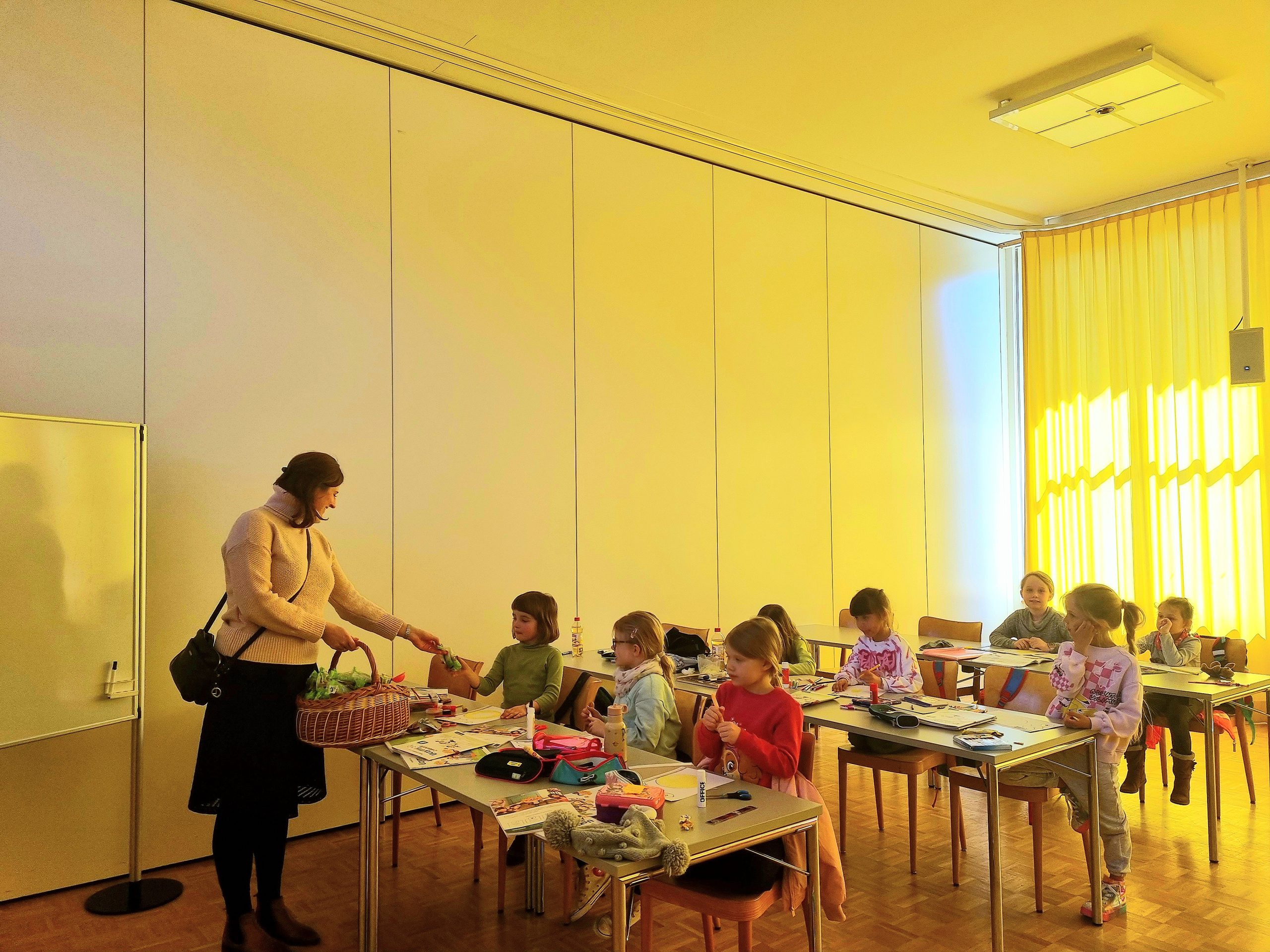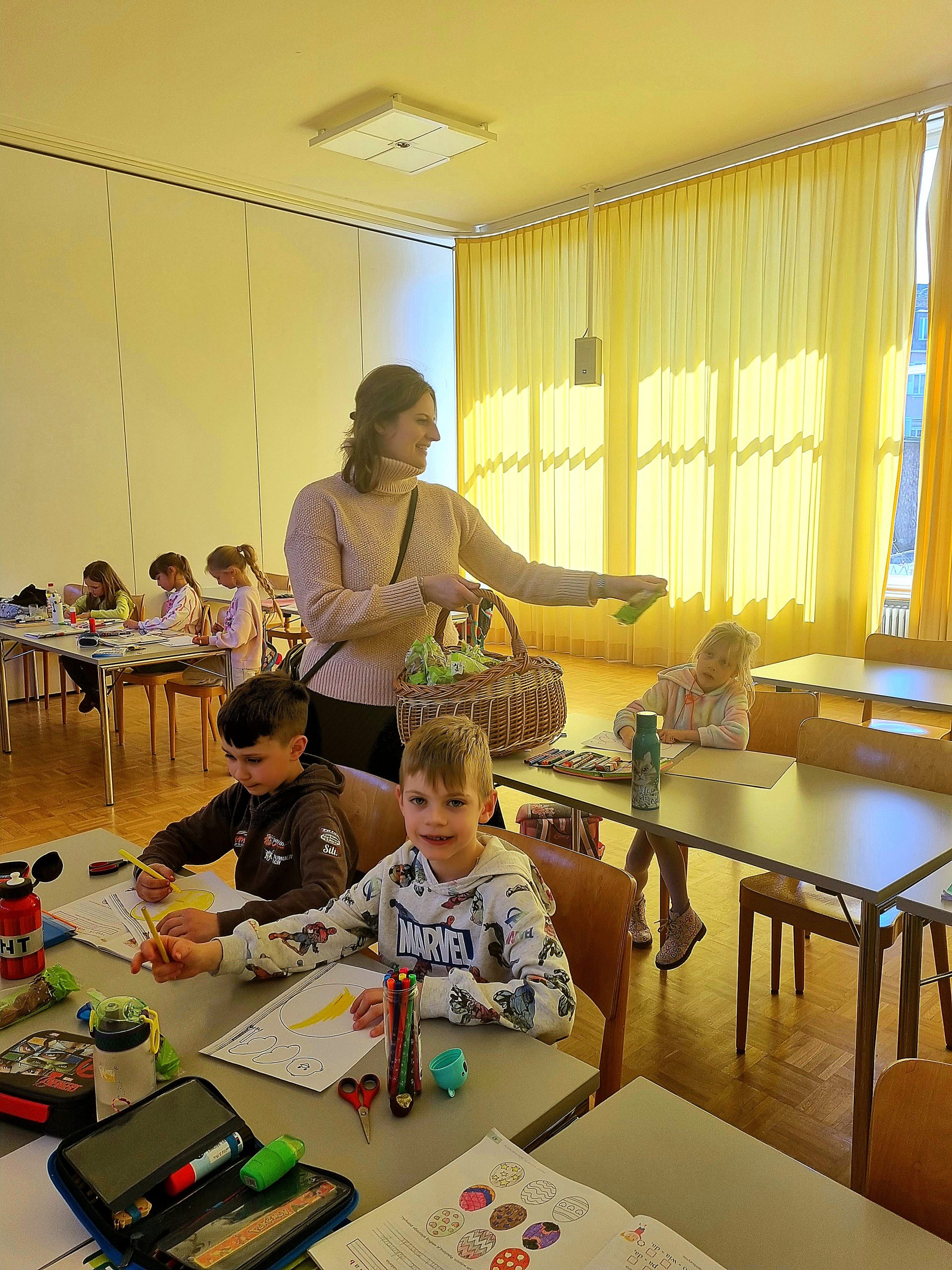 Już prawie Wielkanoc i także w naszej szkole zapanował świąteczny nastrój. Dzieci poznawały polskie zwyczaje i tradycje wielkanocne, wykonały papierowe kurczaczki, kolorowały zajączki oraz malowały pisanki, dowiedziały się także, jakie pokarmy, które idziemy poświęcić w Wielką Sobotę, powinny znaleźć się w naszym koszyczku. A Rada Rodziców przygotowała słodką niespodziankę – każdy uczeń otrzymał czekoladowego zajączka.
