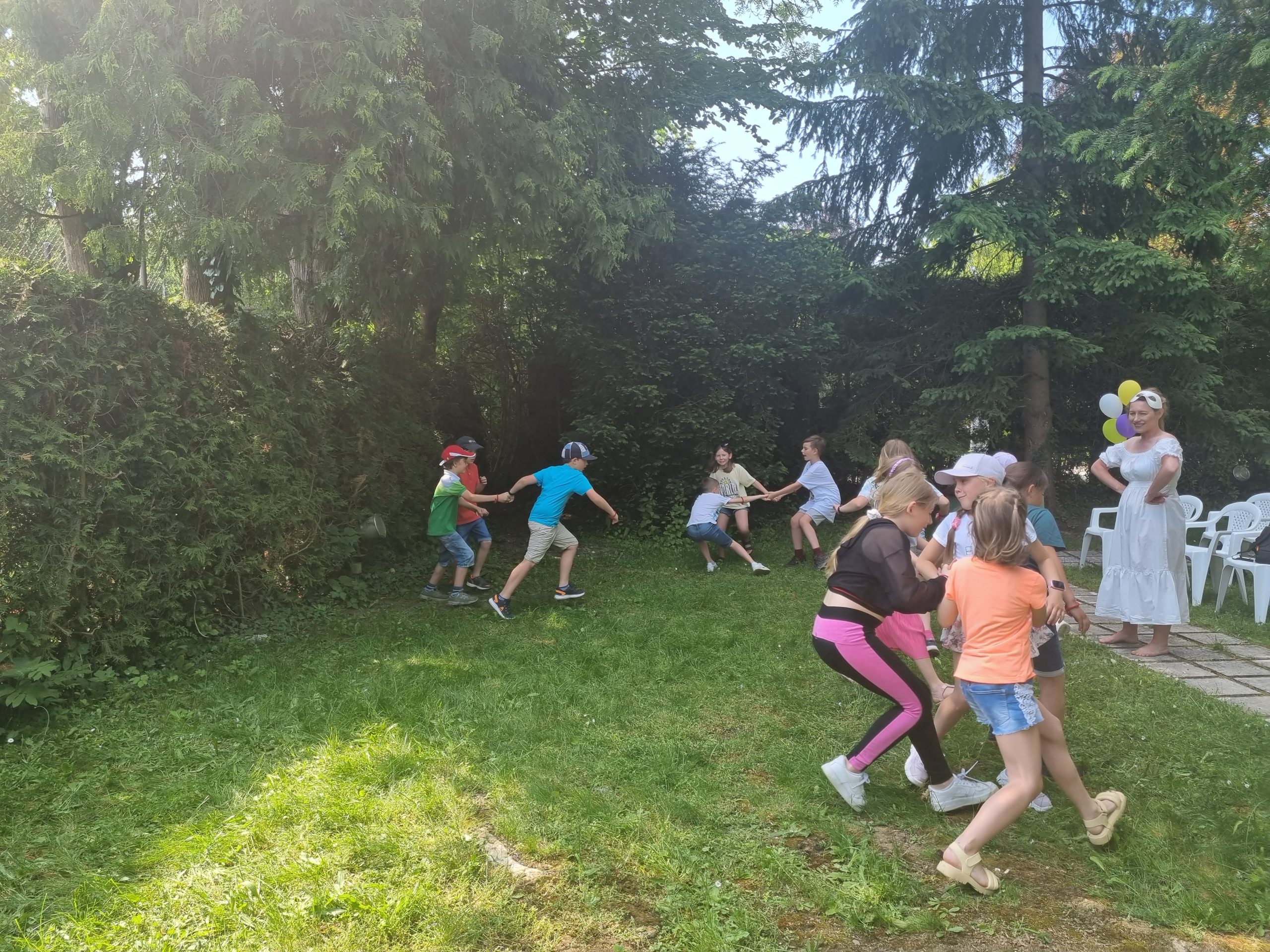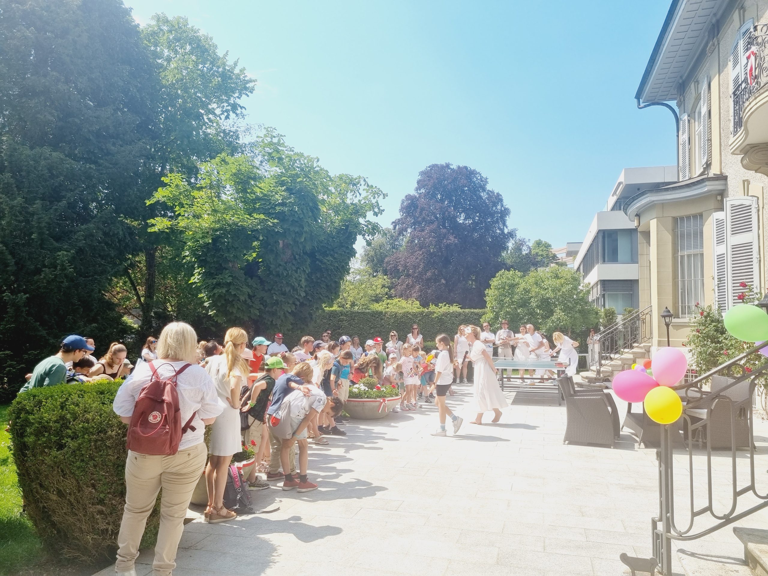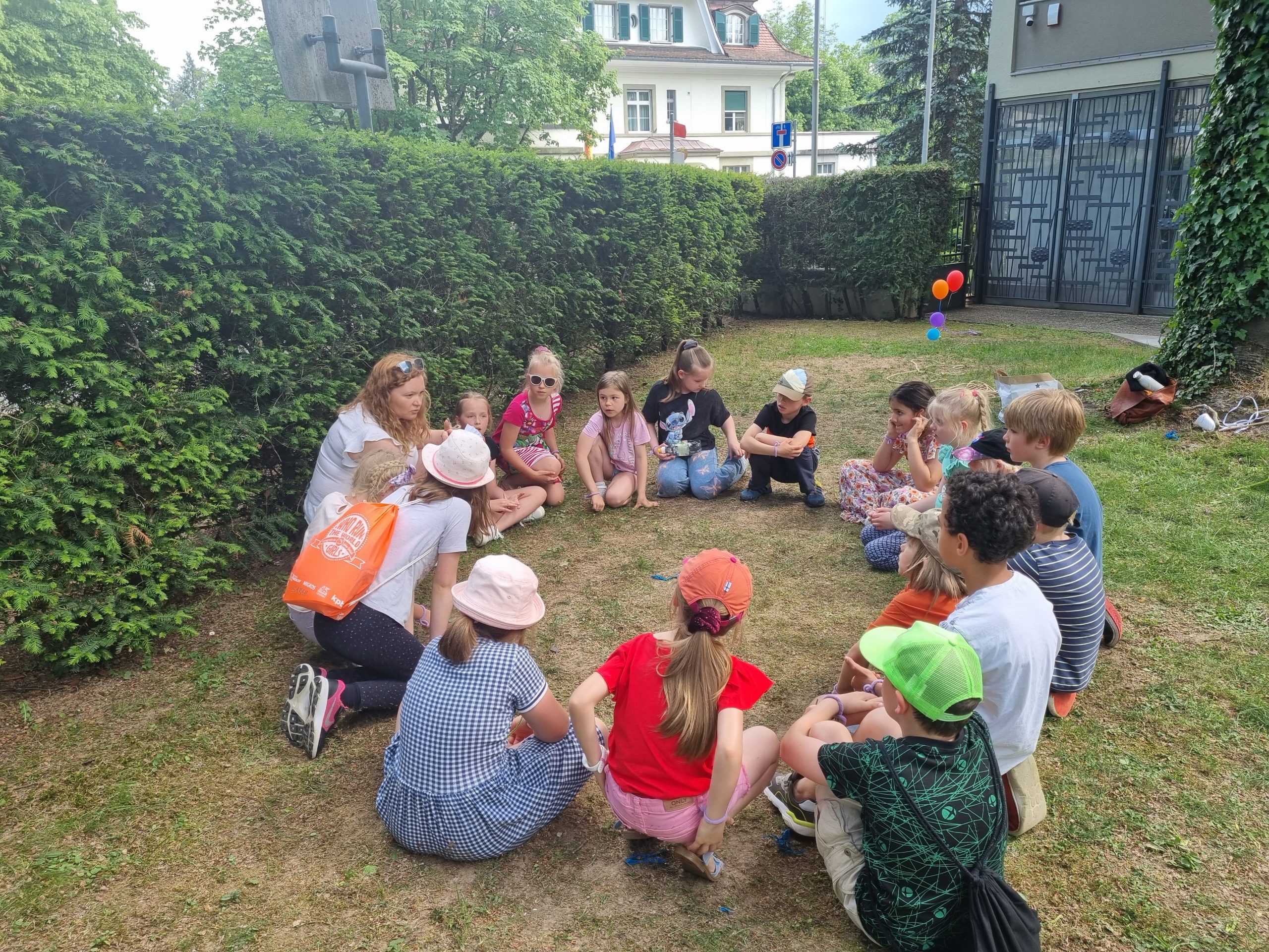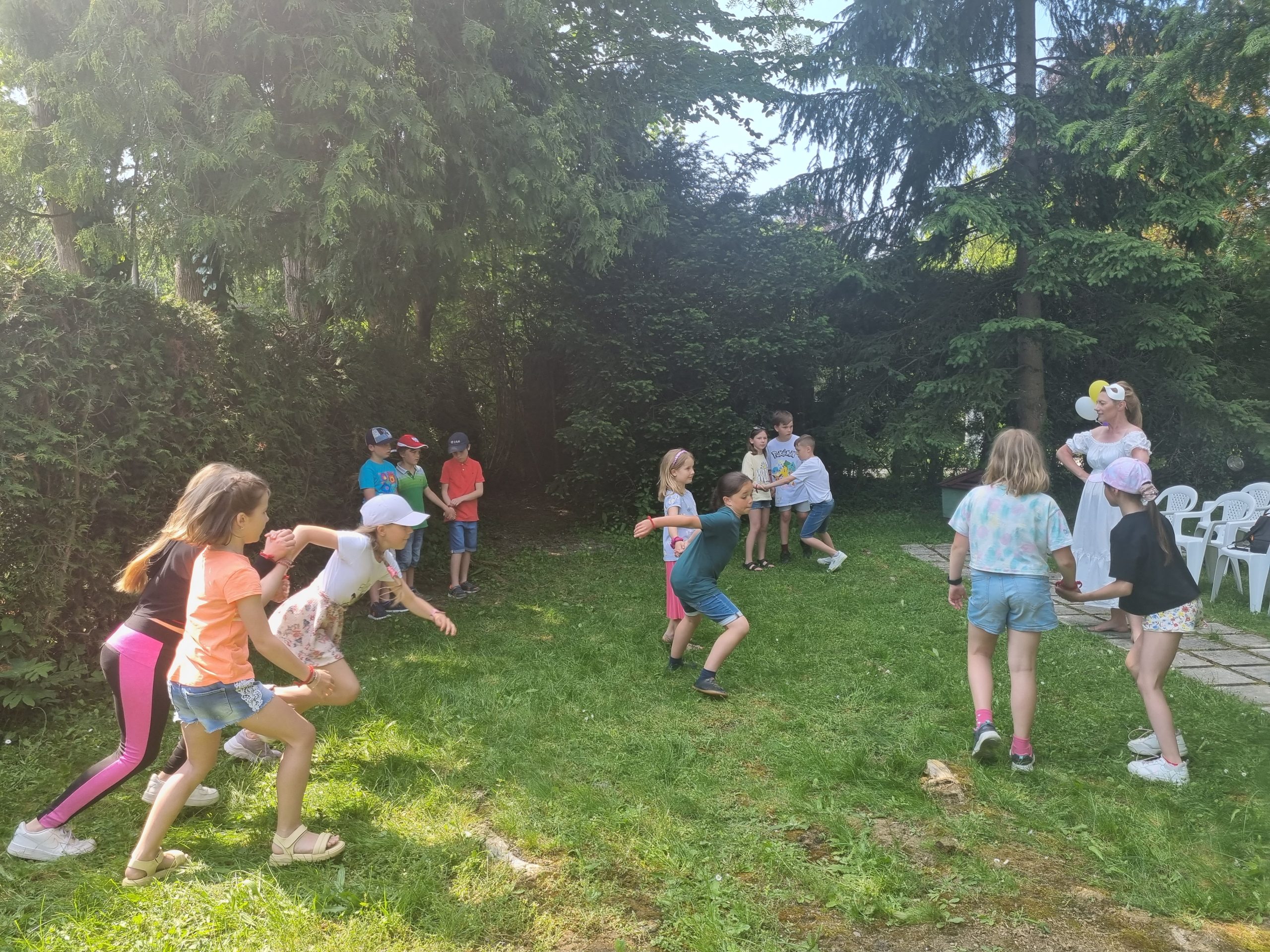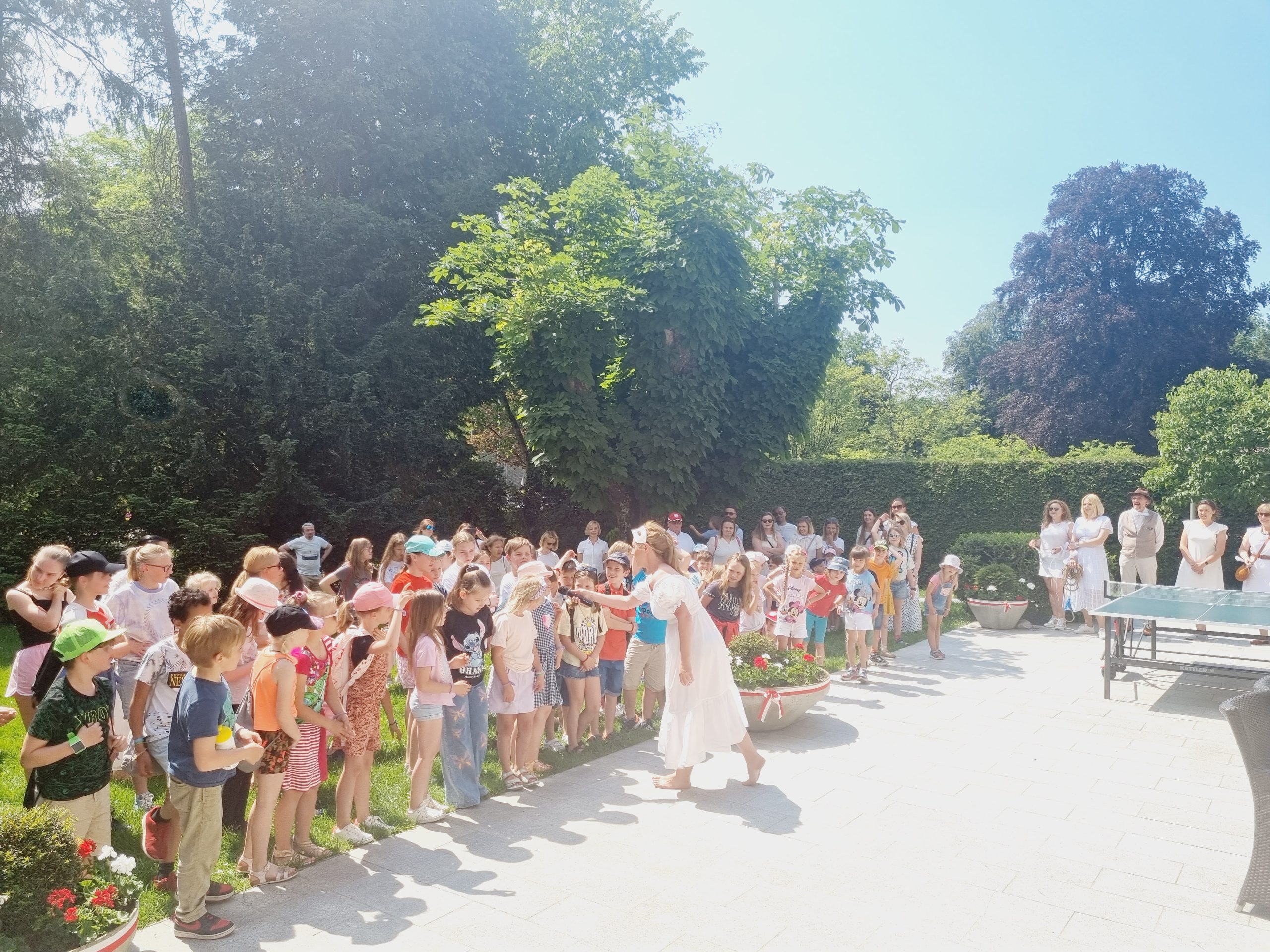 Na małych gości czekał zaczarowany ogród, w którym przywitała ich Królowa, a na sześciu stanowiskach czekali: Książę Cool, Księżna Skał, Księżna Sprawności, Księżna Muzyki, Księżna Teatru oraz Księżna Sprawności. Różnych gier, zadań i zabawy było co niemiara. A na zakończenie na dzieci czekał słodki poczęstunek i prezenty, ufundowane przez Ambasadę RP w Bernie.