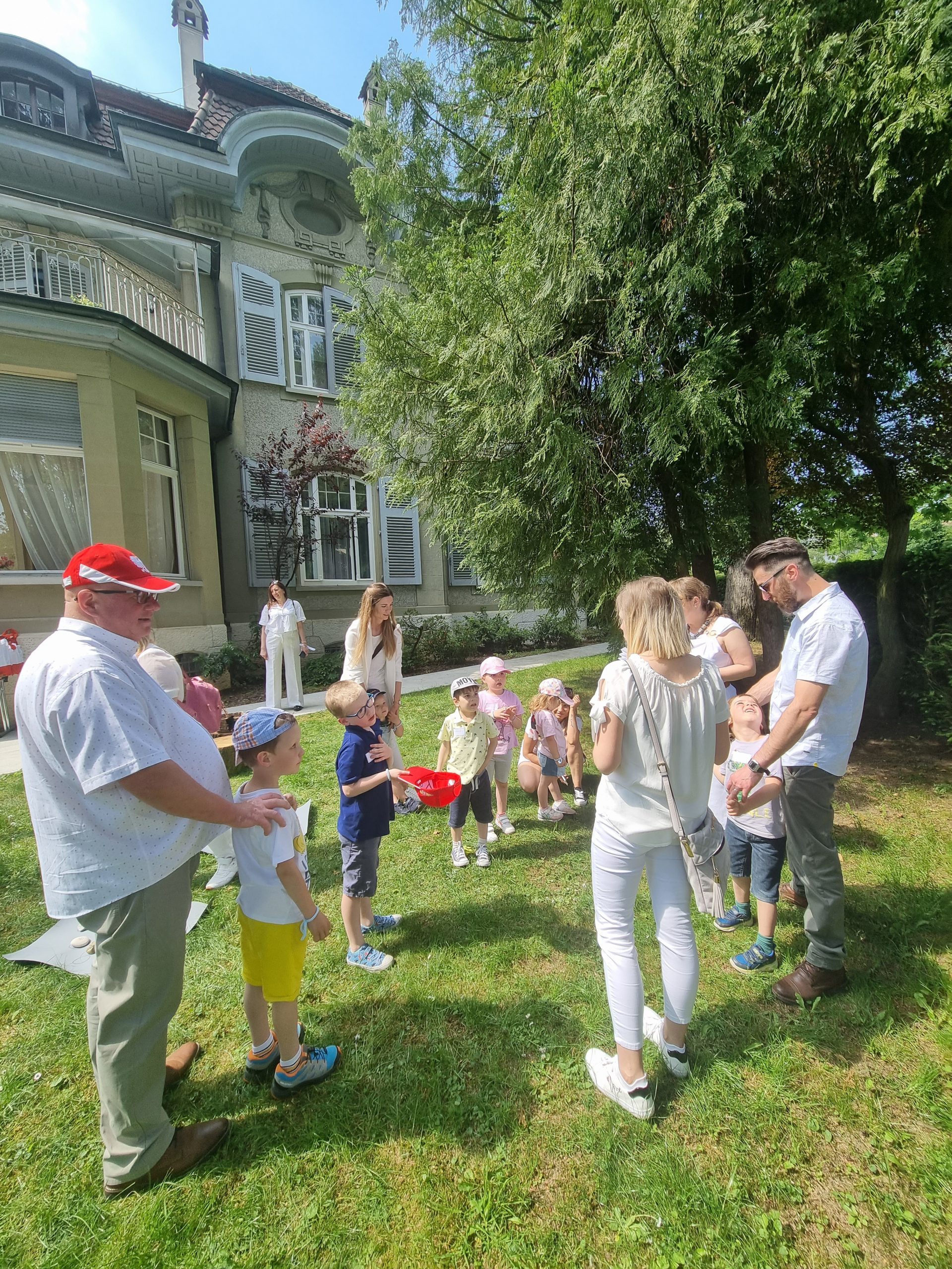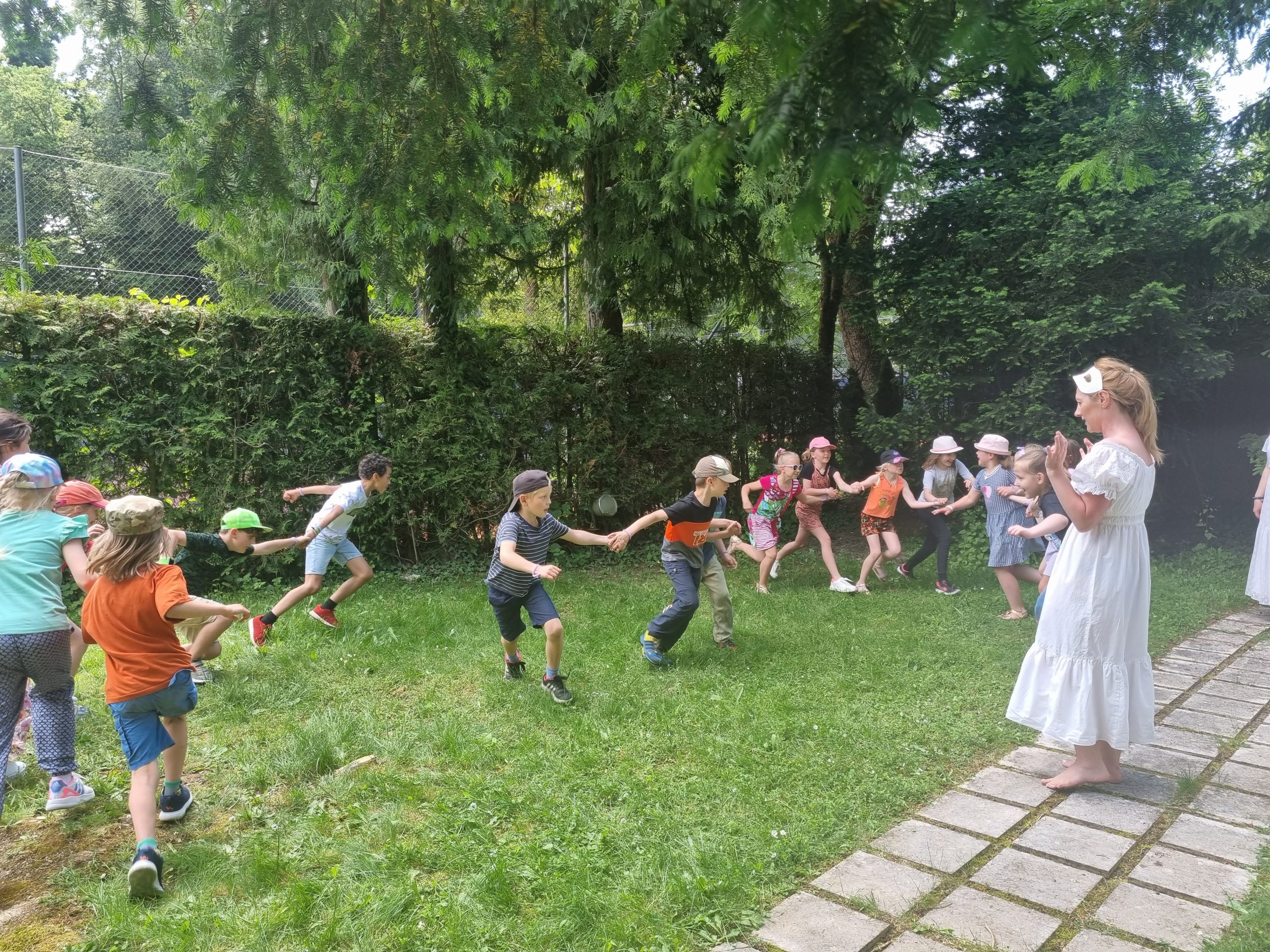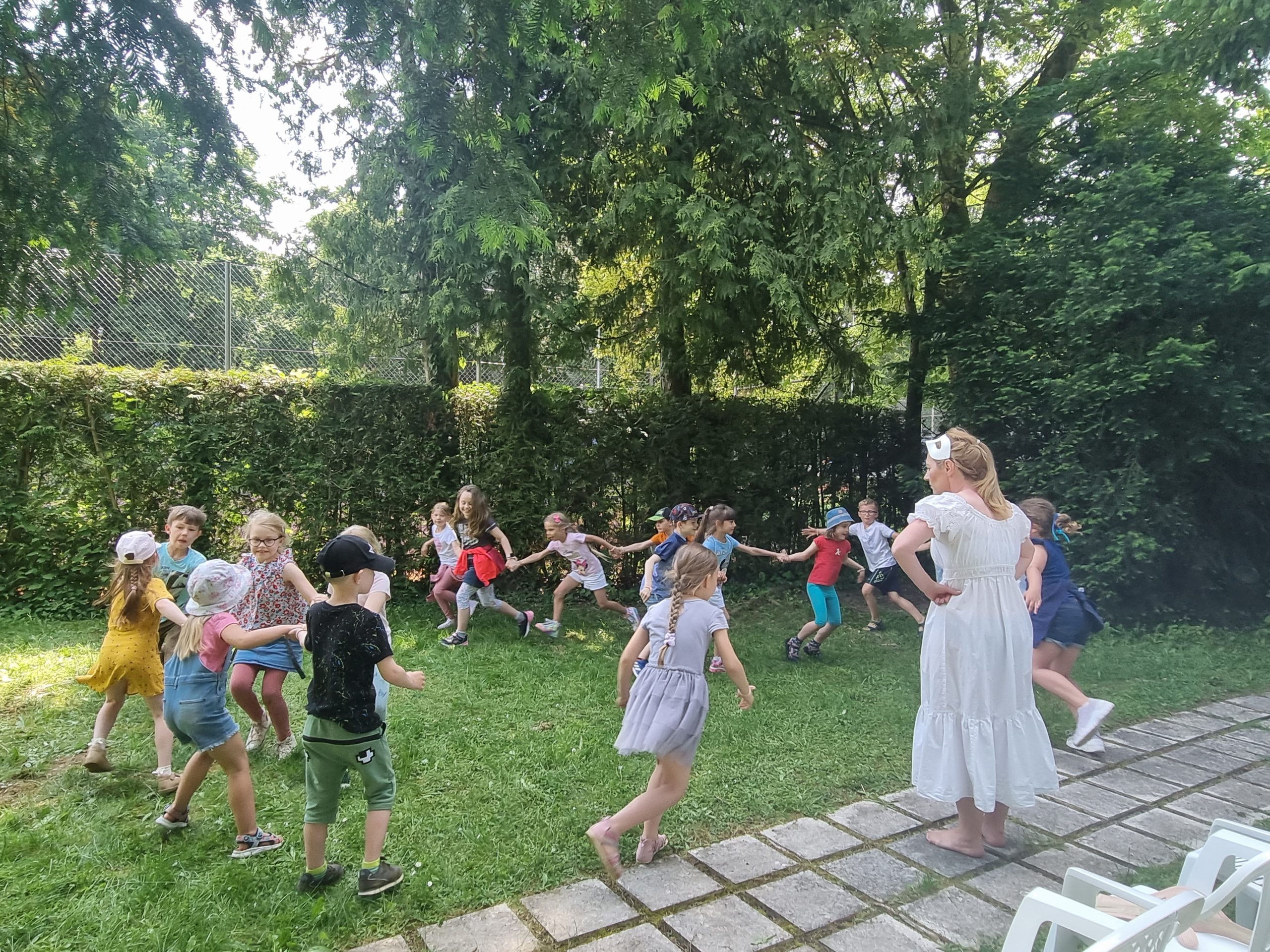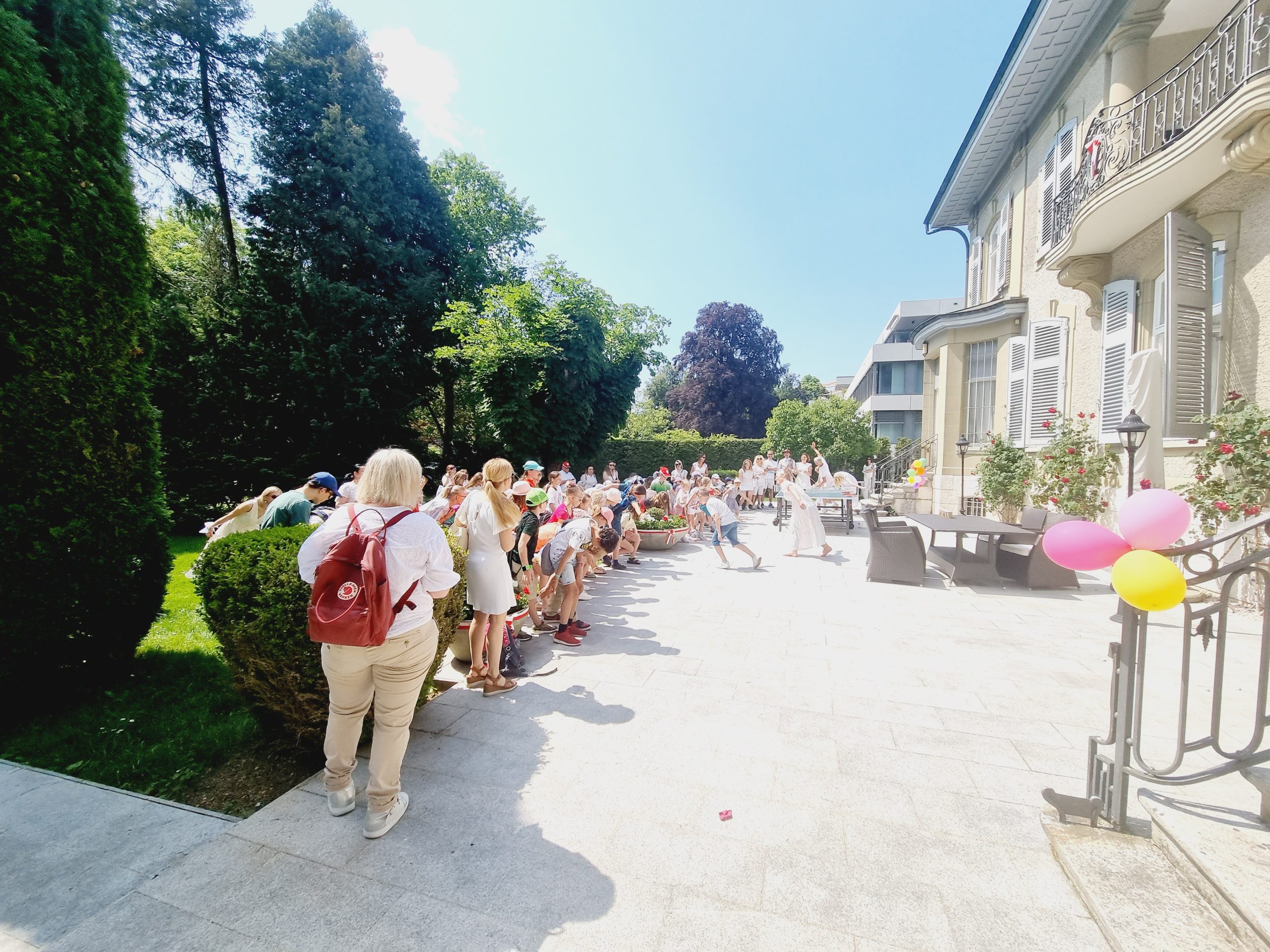 Na małych gości czekał zaczarowany ogród, w którym przywitała ich Królowa, a na sześciu stanowiskach czekali: Książę Cool, Księżna Skał, Księżna Sprawności, Księżna Muzyki, Księżna Teatru oraz Księżna Sprawności. Różnych gier, zadań i zabawy było co niemiara. A na zakończenie na dzieci czekał słodki poczęstunek i prezenty, ufundowane przez Ambasadę RP w Bernie.