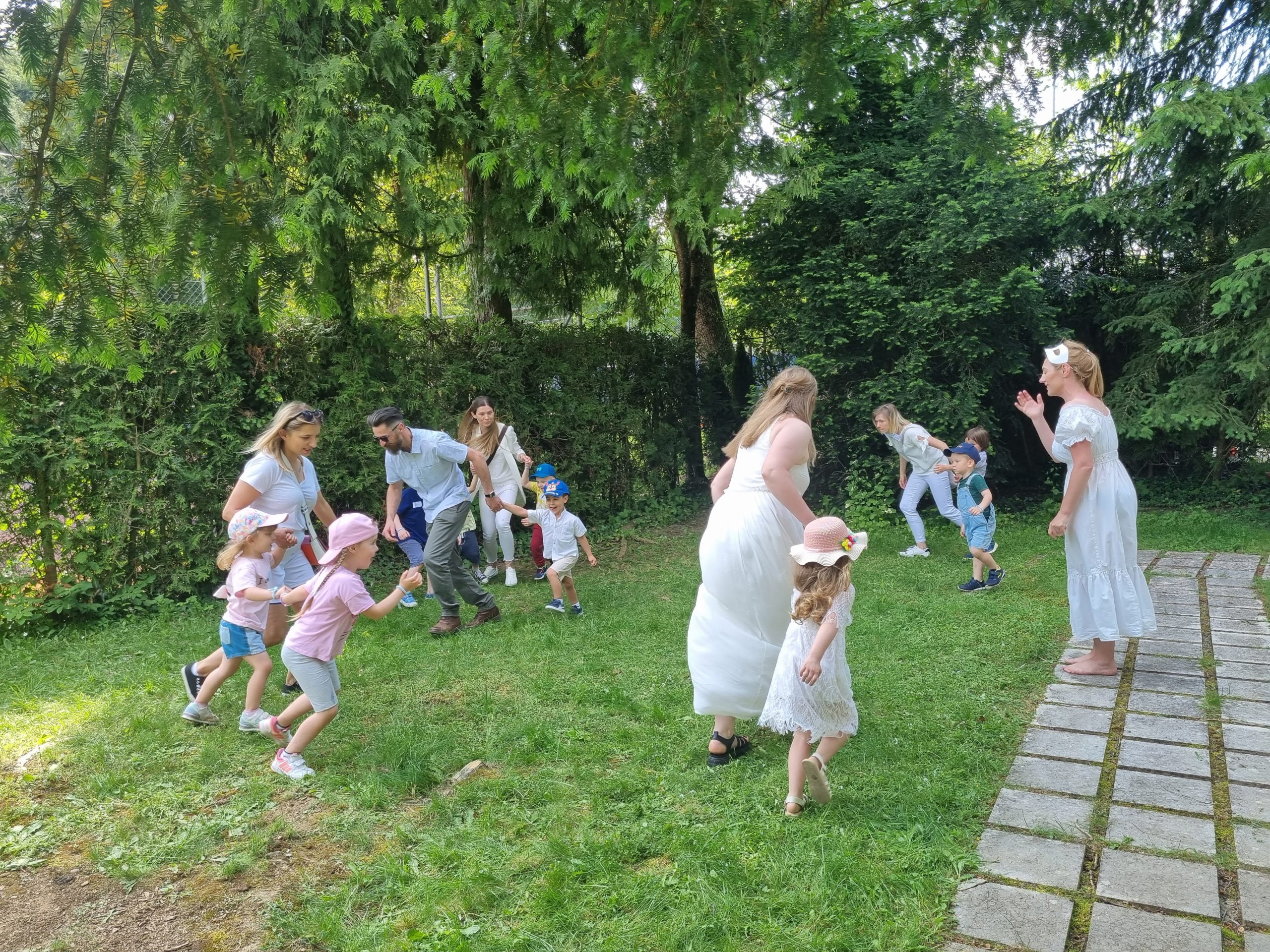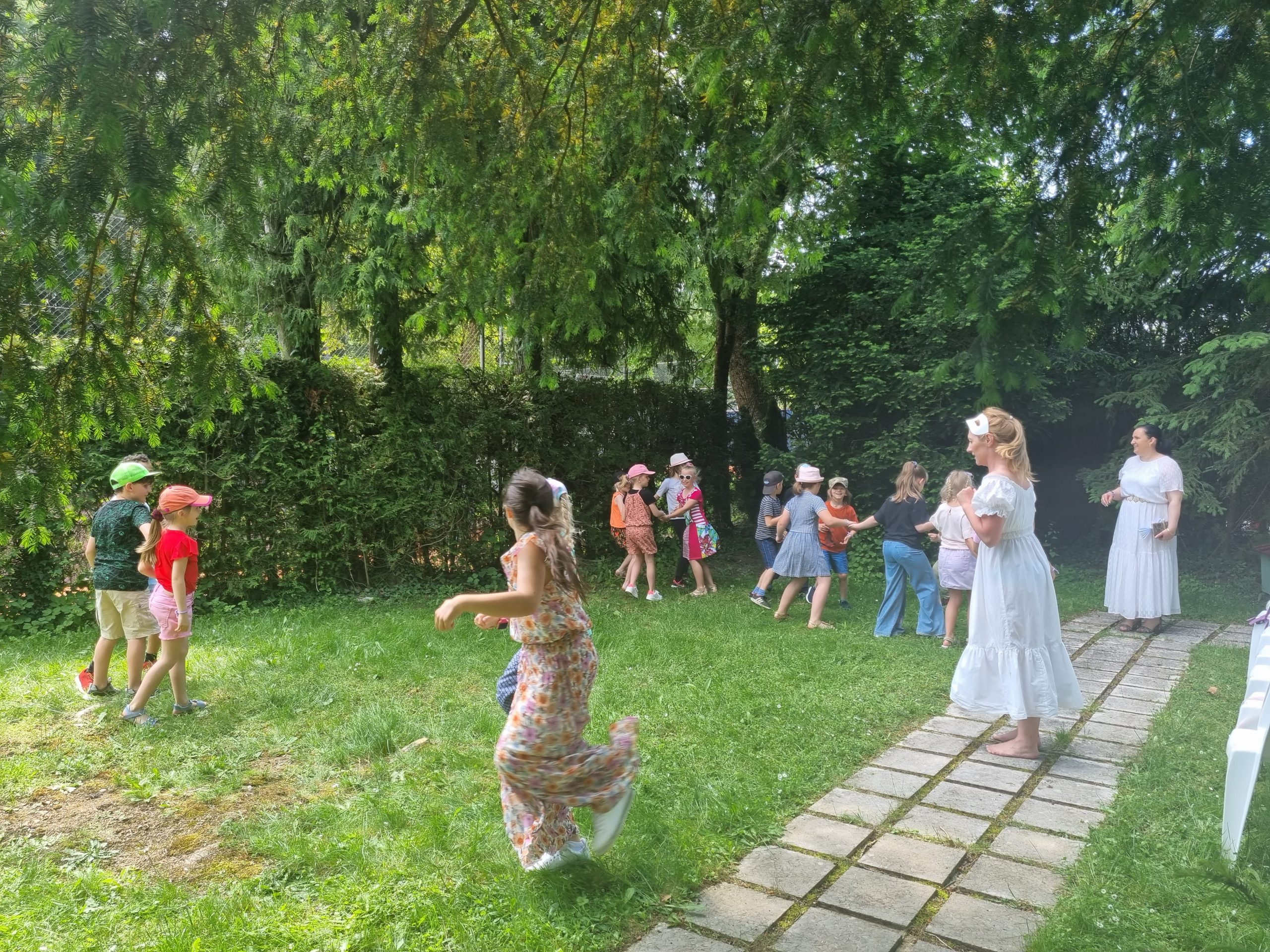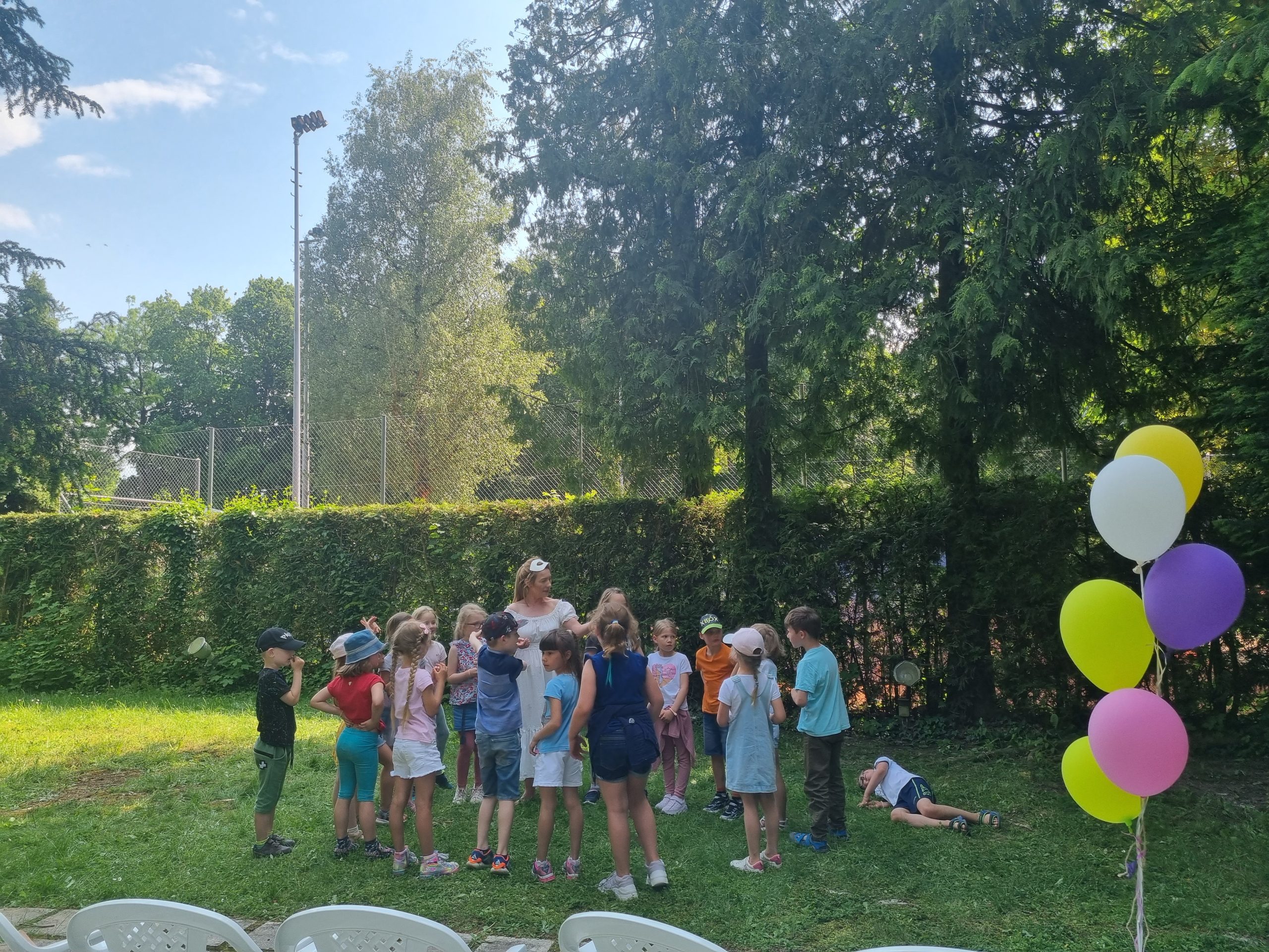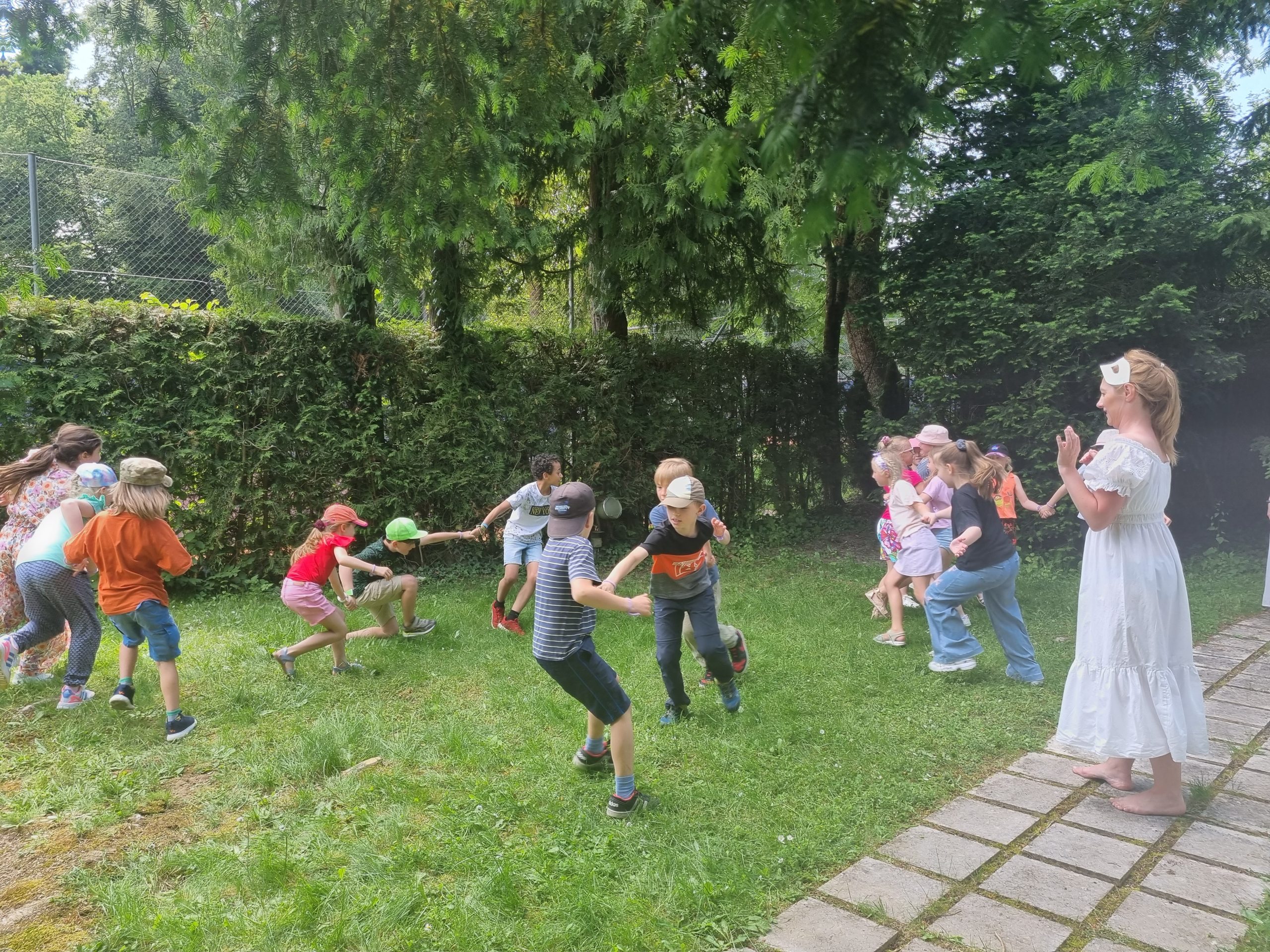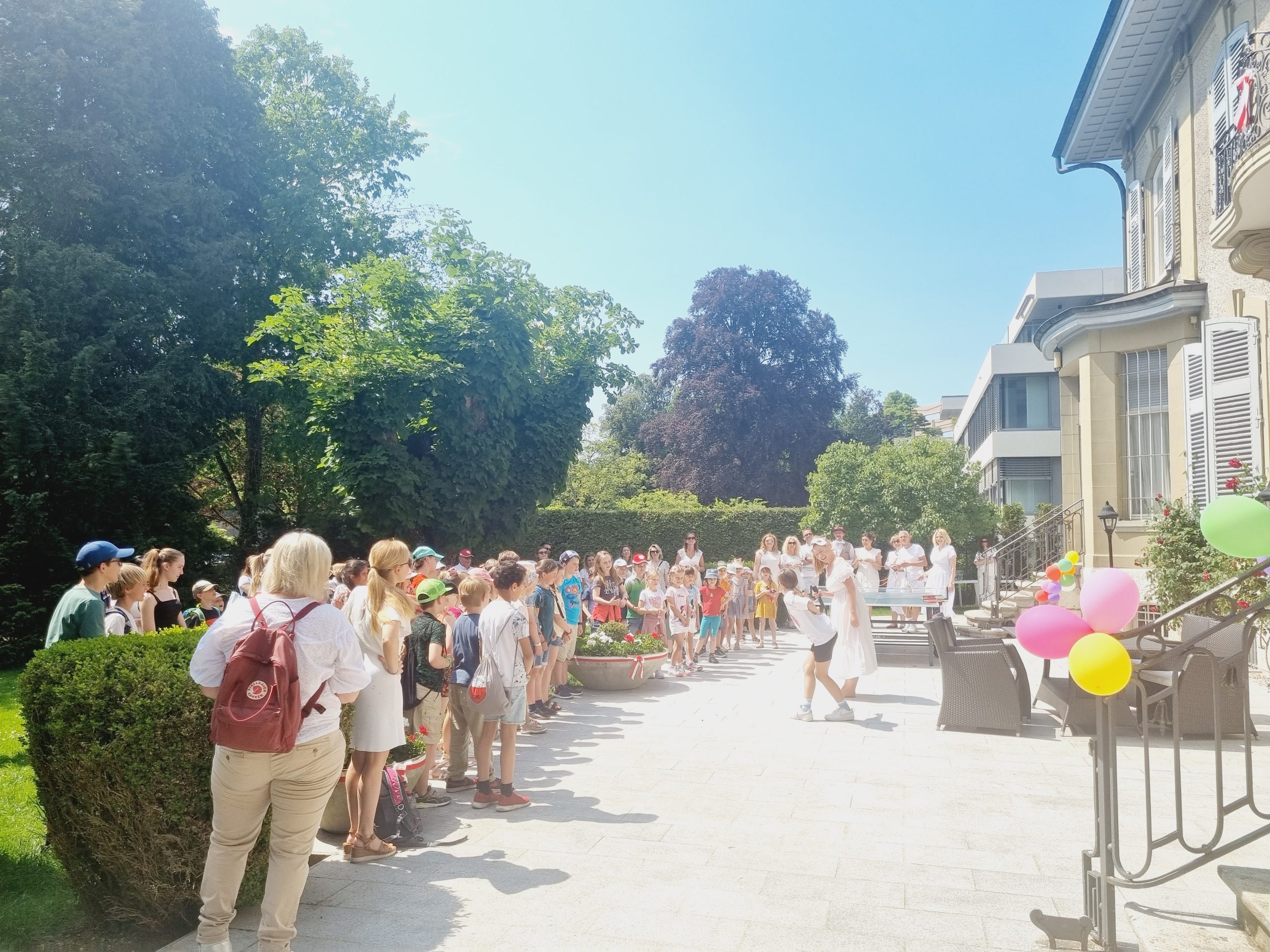 Na małych gości czekał zaczarowany ogród, w którym przywitała ich Królowa, a na sześciu stanowiskach czekali: Książę Cool, Księżna Skał, Księżna Sprawności, Księżna Muzyki, Księżna Teatru oraz Księżna Sprawności. Różnych gier, zadań i zabawy było co niemiara. A na zakończenie na dzieci czekał słodki poczęstunek i prezenty, ufundowane przez Ambasadę RP w Bernie.