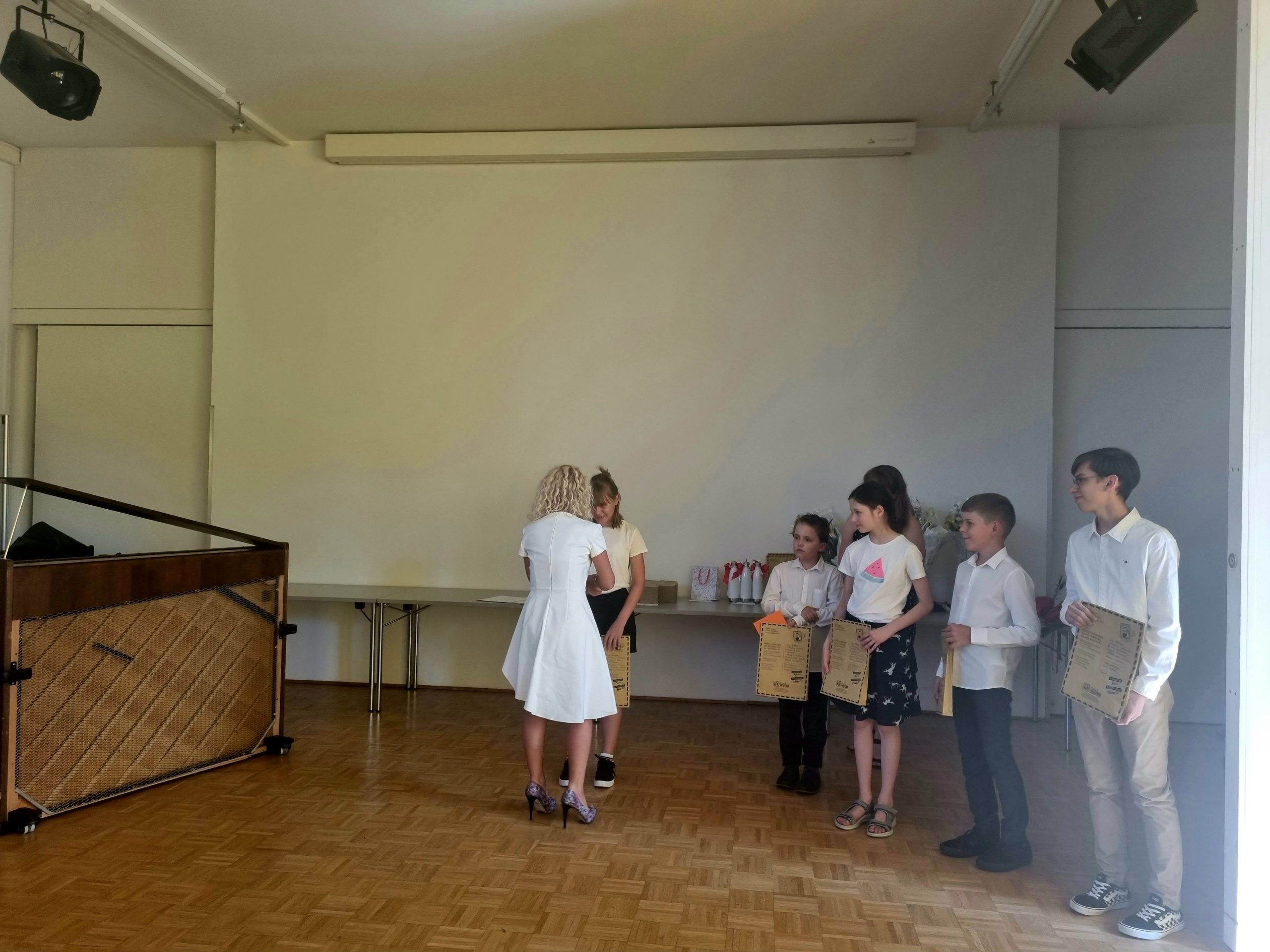 Podczas uroczystości zakończenia roku szkolnego Pani Dyrektor Sylwia Truszczyńska nagrodziła wyróżniających się uczniów naszej szkoły oraz podziękowała za 8 lat nauki absolwentom szkoły podstawowej. Nagrodą uhonorowana została także Pani Magdalena Szlag-Stachowiak, która w tym roku obchodzi 20-lecie pracy w szkołach polskich za granicą. Nie zabrakło też upominków i kwiatów dla Grona Pedagogicznego oraz Rady Rodziców w podziękowaniu za ich pracę i zaangażowanie.
