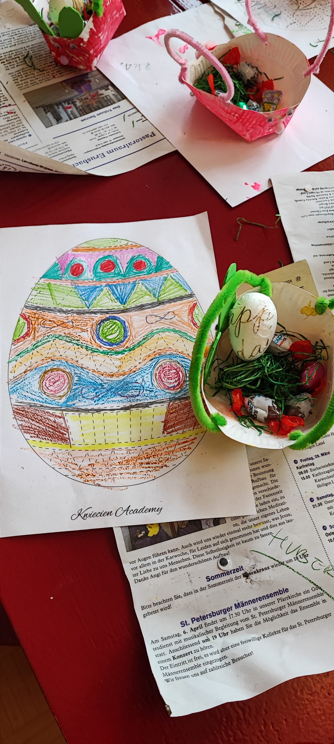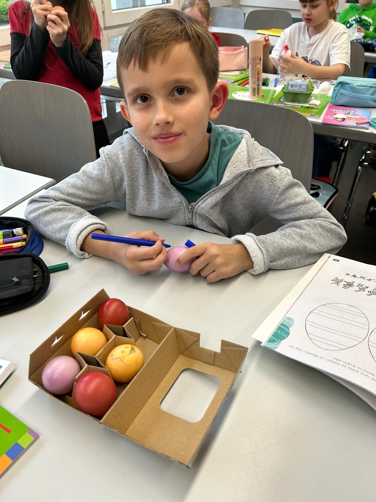 Święta Wielkanocne tuż-tuż, dlatego koniec marca dla uczniów naszej szkoły był okresem przygotowań. Dzieci poznawały zwyczaje i tradycje wielkanocne, które są charakterystyczne dla Polski. Maluchy z oddziału przedszkolnego wykonały koszyczek wielkanocny i rozpoznawały pokarmy, które powinny się w nim znaleźć, a także kolorowały pisanki. Uczniowie klas 1-3 również malowali przepiękne pisanki, a do tego stworzyli wielkanocne zajączki.