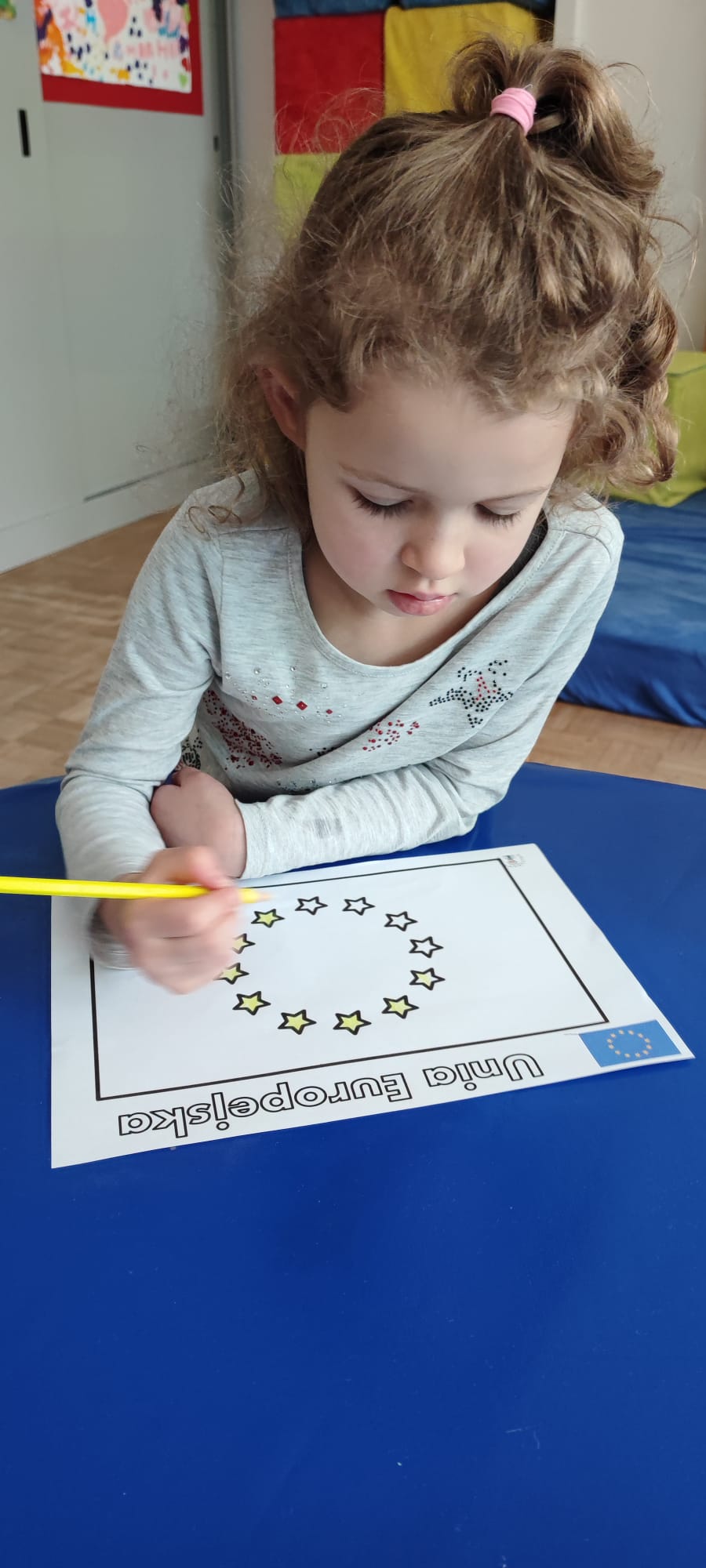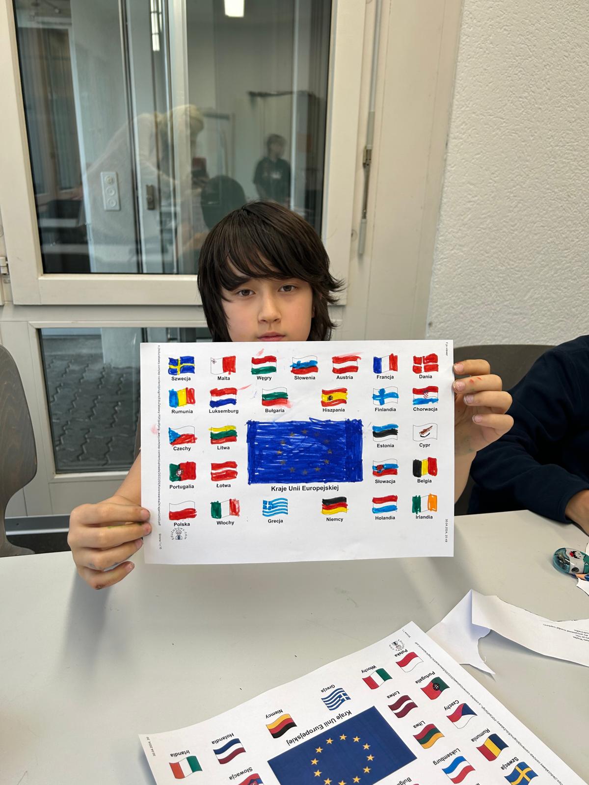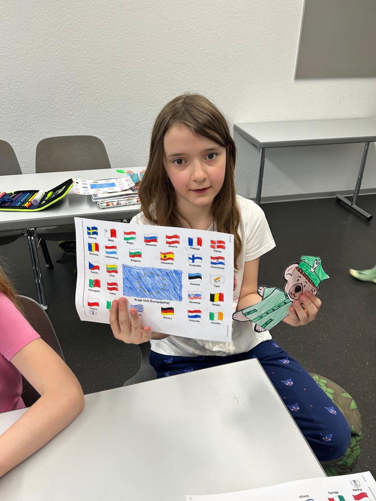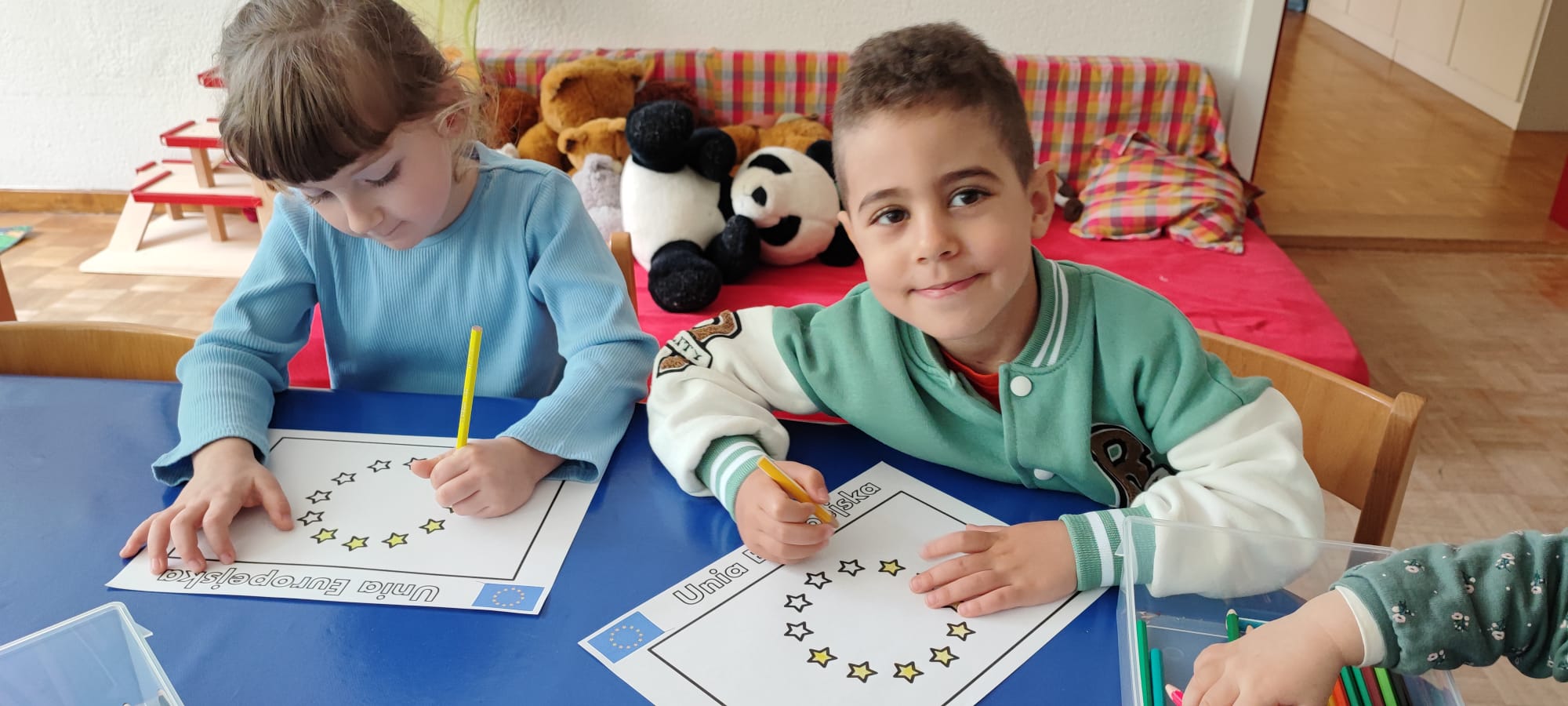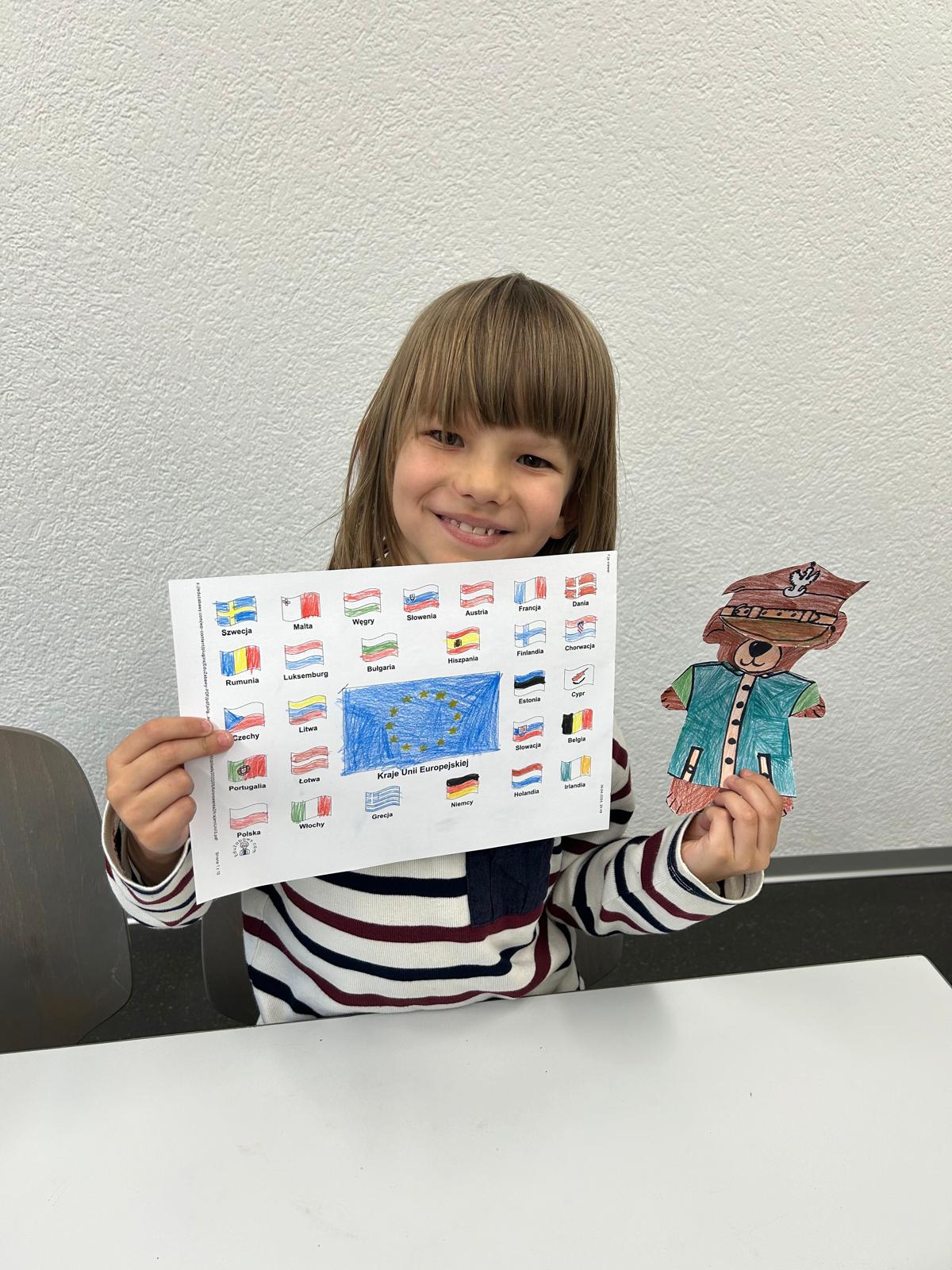 Dzięki filmom edukacyjnym i ciekawym zadaniom dzieci poznały 27 krajów, wchodzących w skład UE. Uczniowie kolorowali flagi poszczególnych państw UE, m.in. metodą kodowania, układali mapę wspólnoty oraz zapoznawali się z ciekawostkami, dotyczącymi krajów Unii. Dzieci kolorowały też unijną flagę oraz poznały Syriusza, maskotkę Unii Europejskiej. Uczniowie wykonali także swój projekt maskotki, inspirowany Polską.