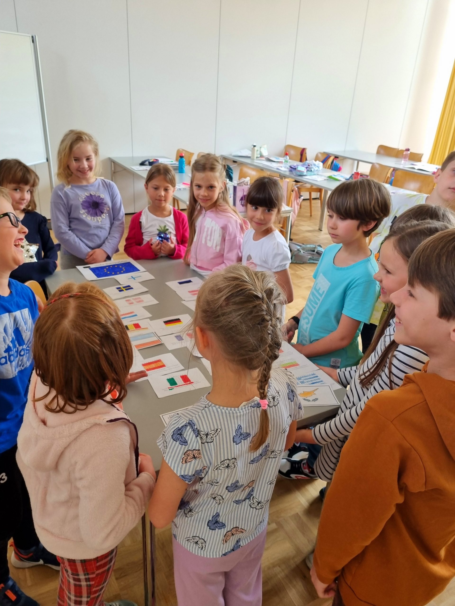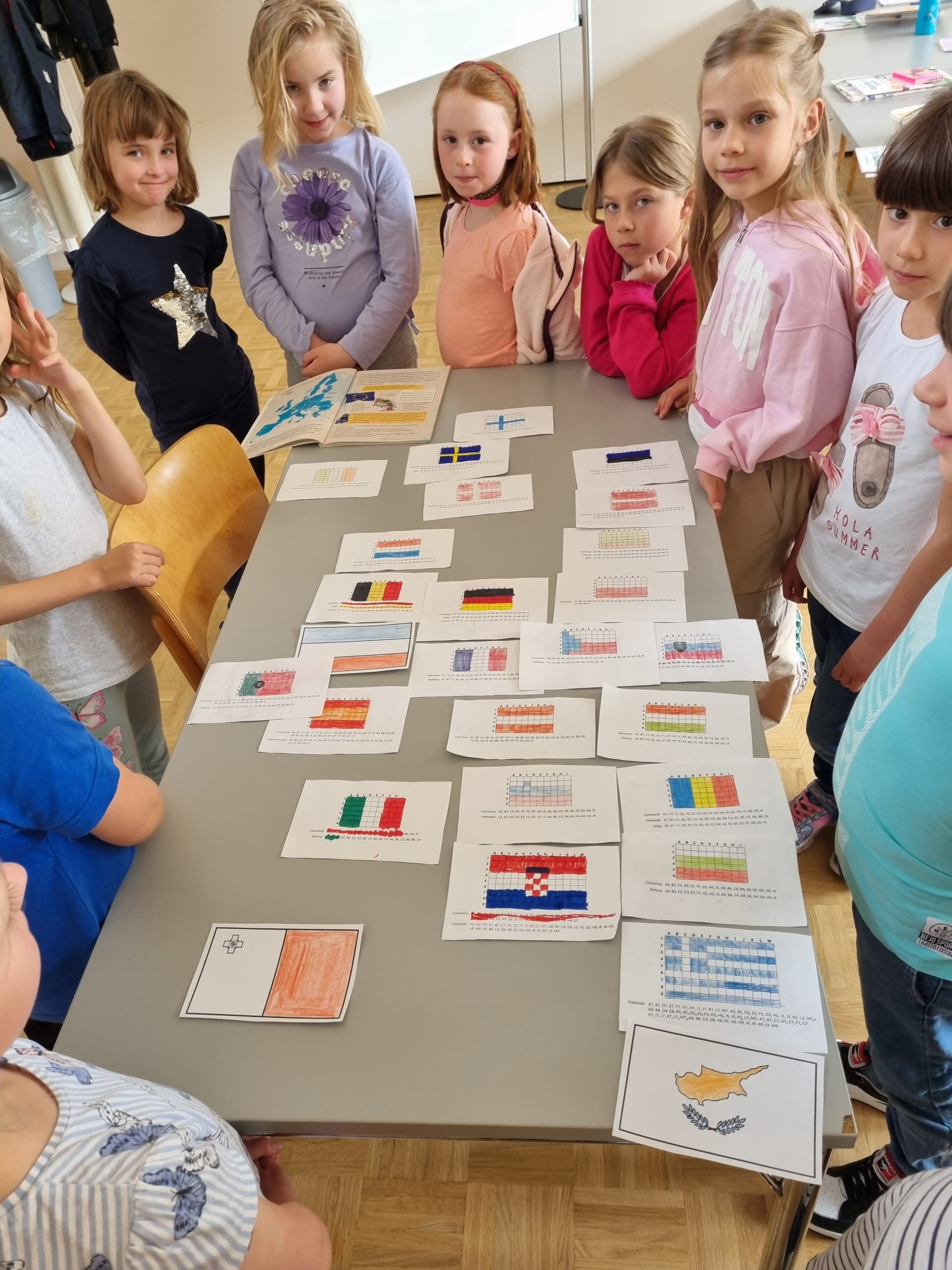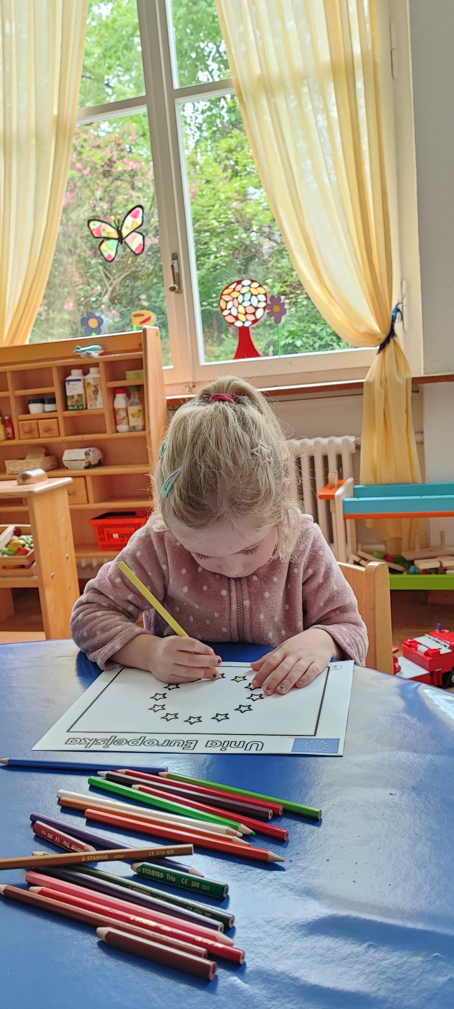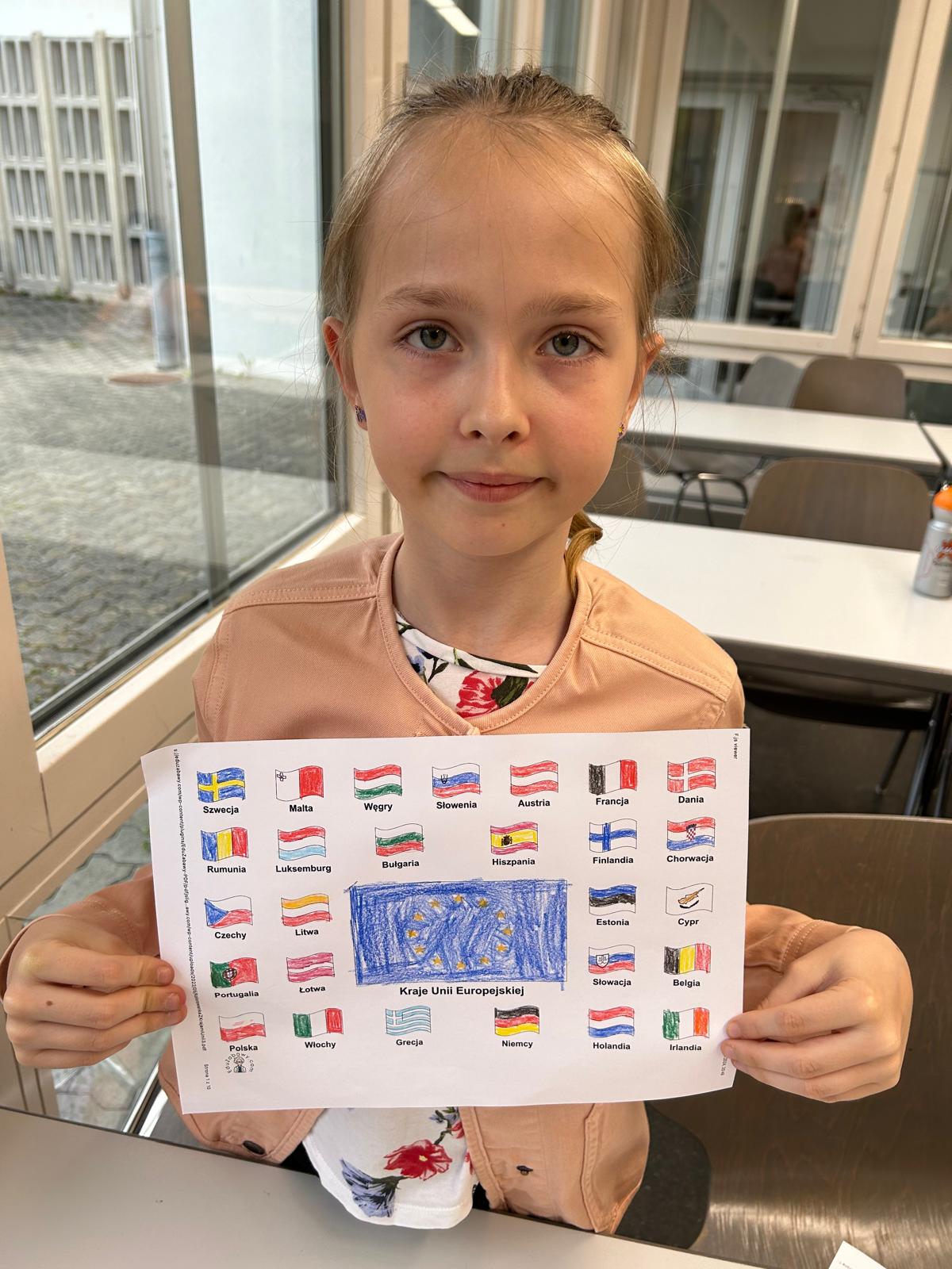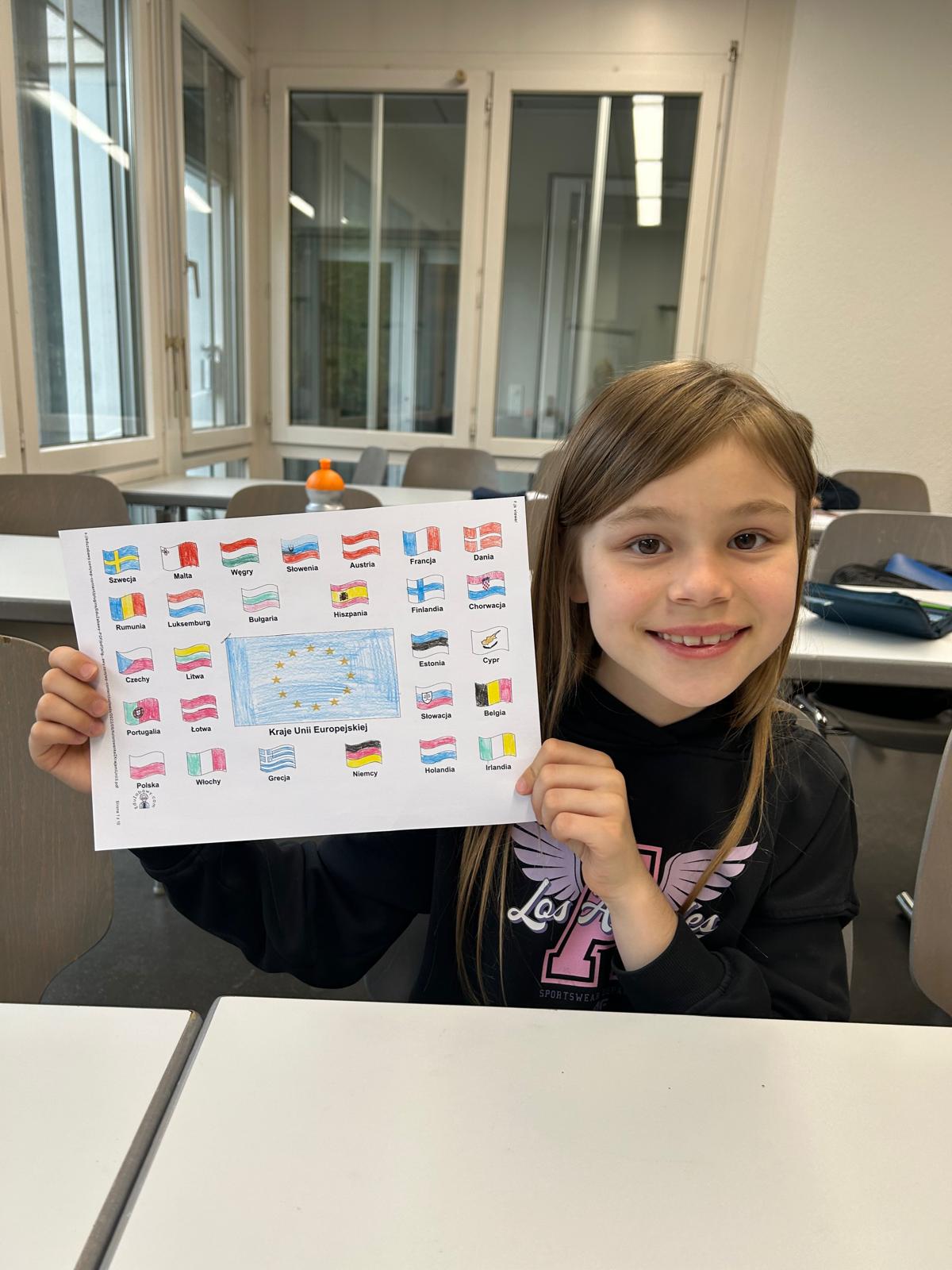 Dzięki filmom edukacyjnym i ciekawym zadaniom dzieci poznały 27 krajów, wchodzących w skład UE. Uczniowie kolorowali flagi poszczególnych państw UE, m.in. metodą kodowania, układali mapę wspólnoty oraz zapoznawali się z ciekawostkami, dotyczącymi krajów Unii. Dzieci kolorowały też unijną flagę oraz poznały Syriusza, maskotkę Unii Europejskiej. Uczniowie wykonali także swój projekt maskotki, inspirowany Polską.