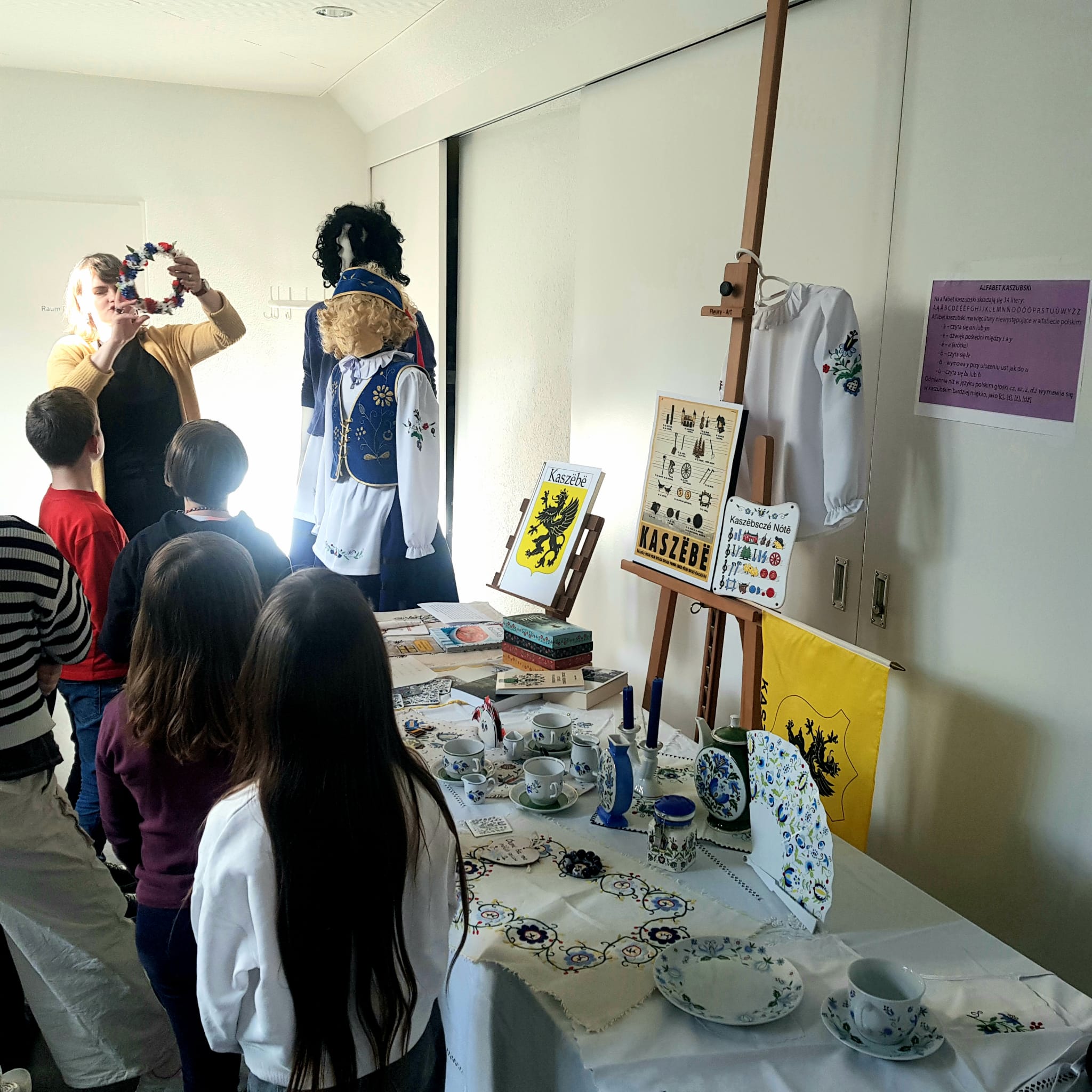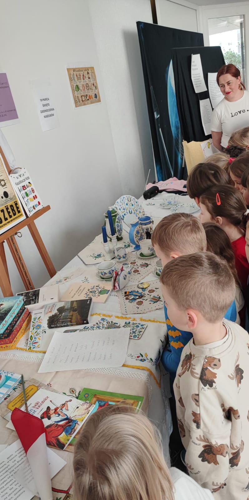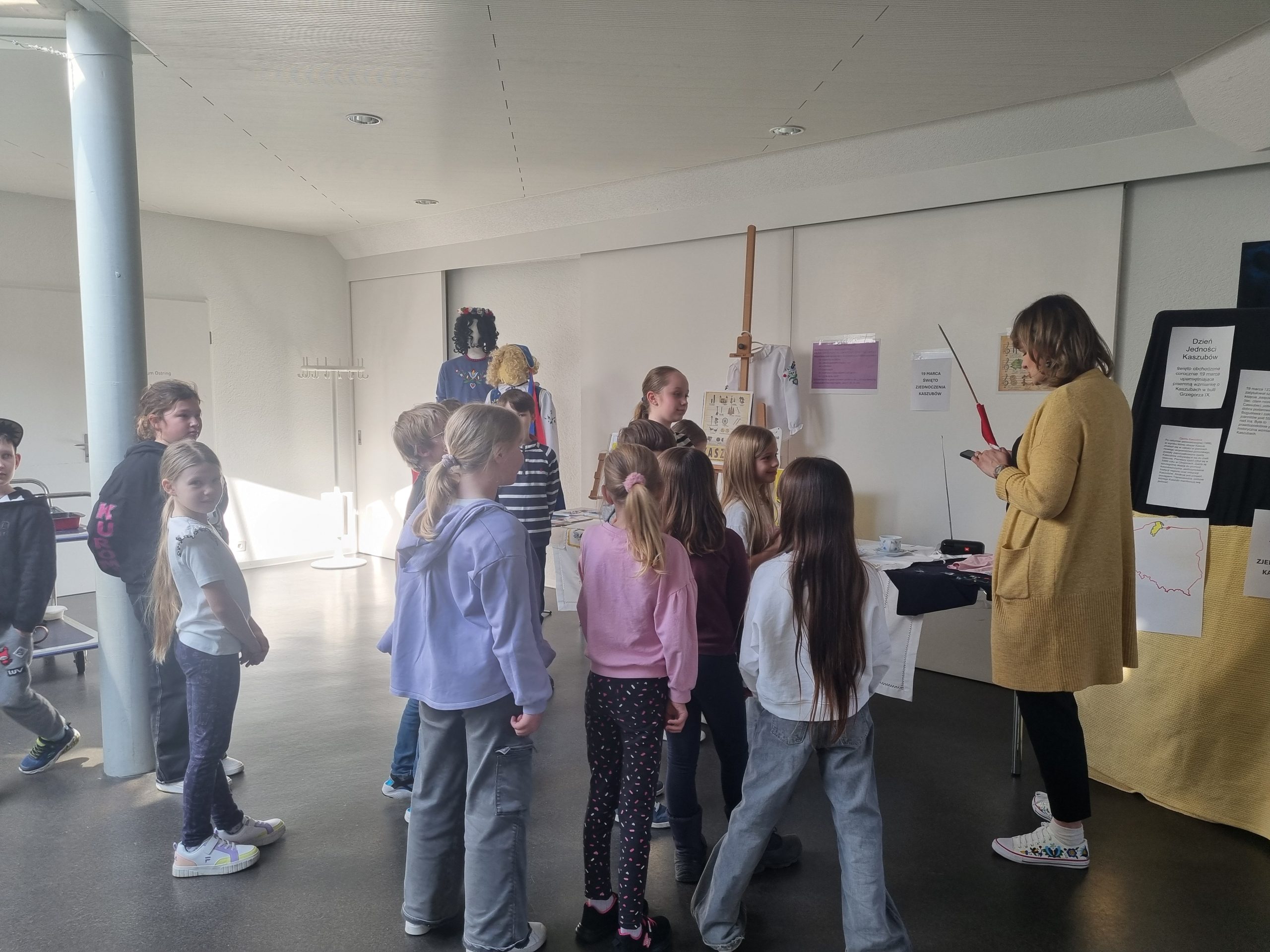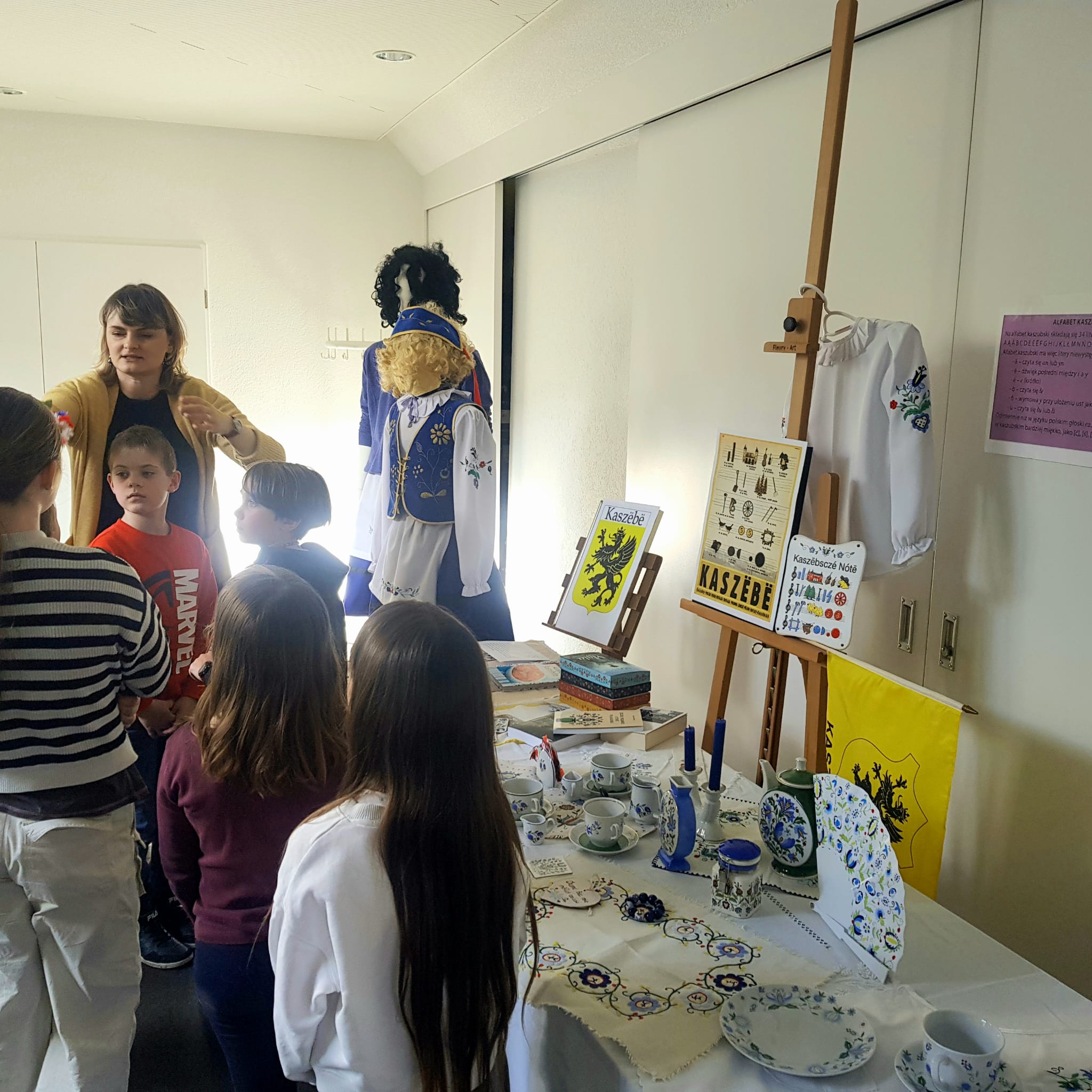 Dzieci dowiedziały się, dlaczego 19 marca jest ważnym dniem dla Kaszubów, ponieważ właśnie tego dnia 1238 roku papież zatytułował szczecińskiego księcia „księciem Kaszub”. Była to prawdopodobnie pierwsza historyczna wzmianka o Kaszubach. Uczniowie poznali cechy języka kaszubskiego oraz ciekawostki na temat tego regionu Polski. Mogli też podziwiać m.in. tradycjne kaszubskie stroje, książki w języku kaszubskim, pięknie haftowane serwety oraz porcelanę.