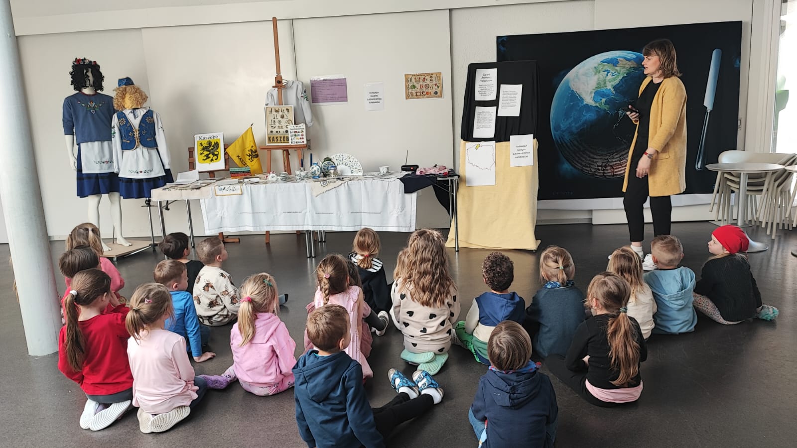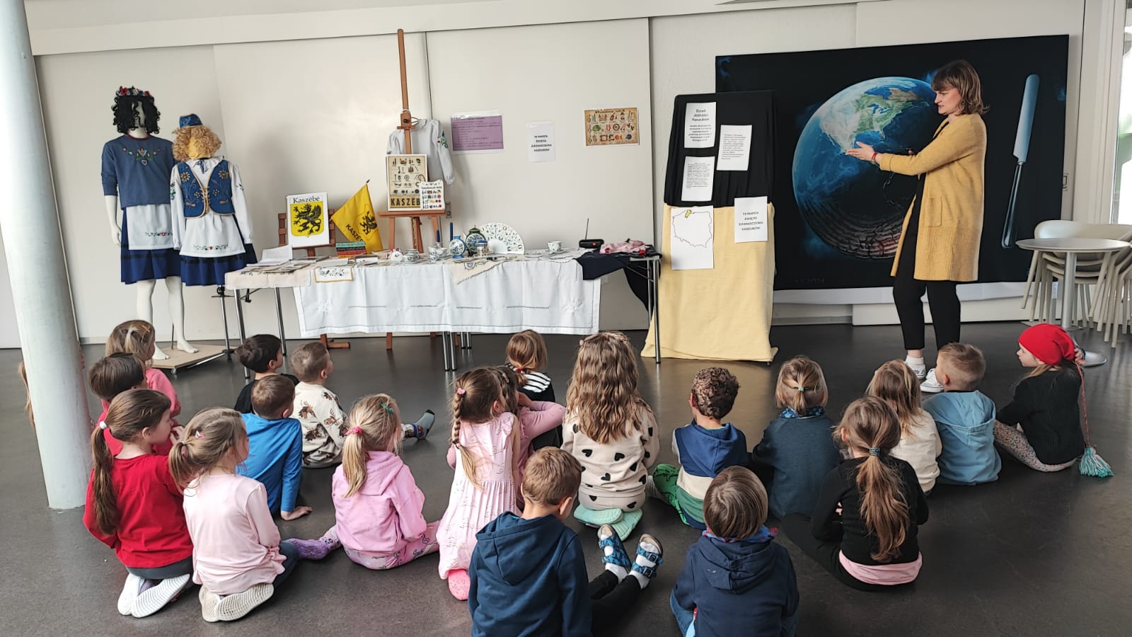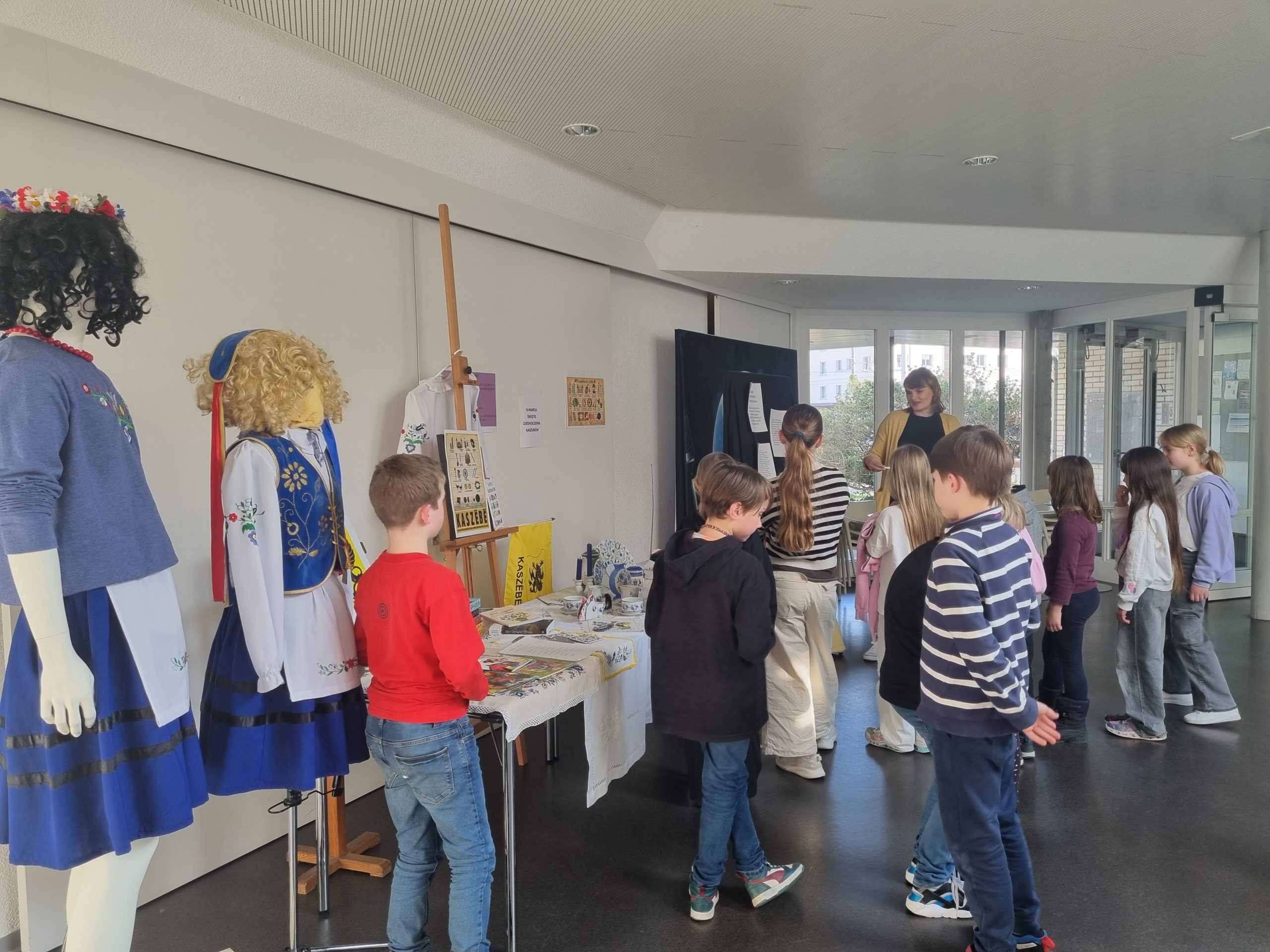 Dzieci dowiedziały się, dlaczego 19 marca jest ważnym dniem dla Kaszubów, ponieważ właśnie tego dnia 1238 roku papież zatytułował szczecińskiego księcia „księciem Kaszub”. Była to prawdopodobnie pierwsza historyczna wzmianka o Kaszubach. Uczniowie poznali cechy języka kaszubskiego oraz ciekawostki na temat tego regionu Polski. Mogli też podziwiać m.in. tradycjne kaszubskie stroje, książki w języku kaszubskim, pięknie haftowane serwety oraz porcelanę.