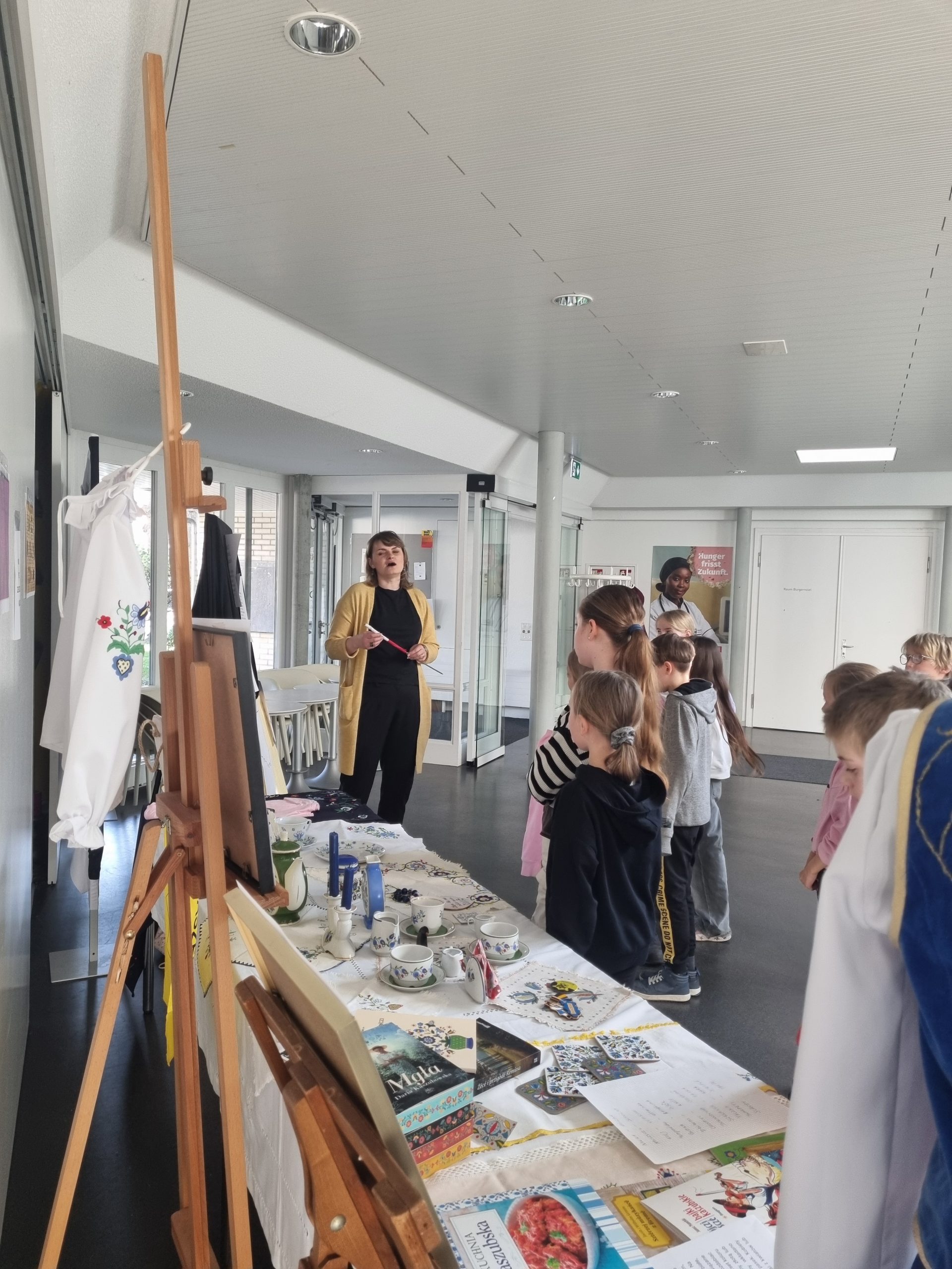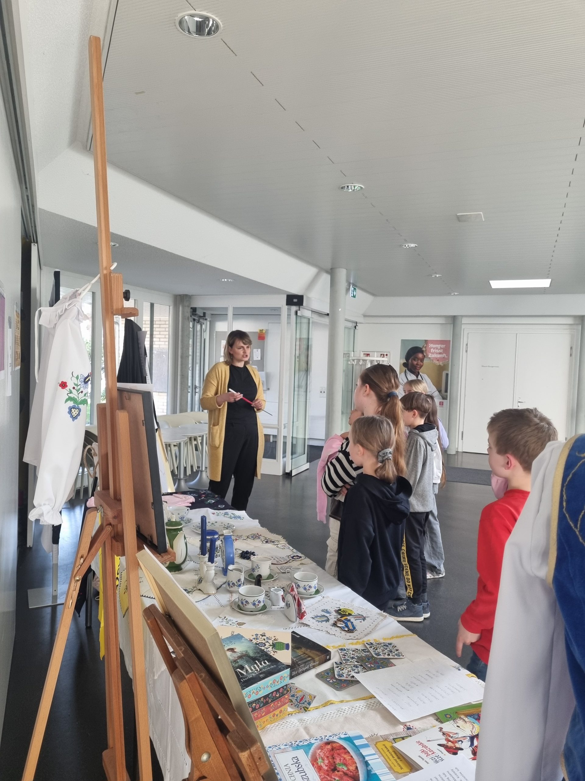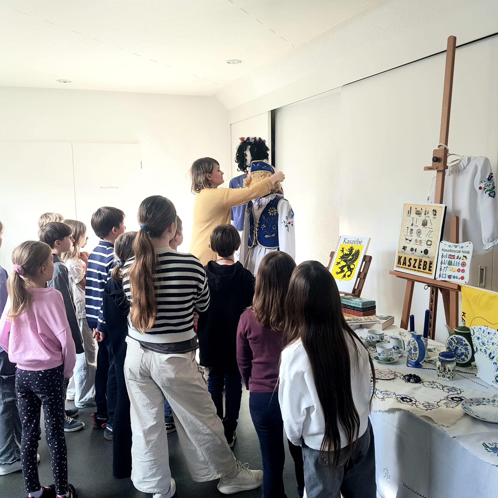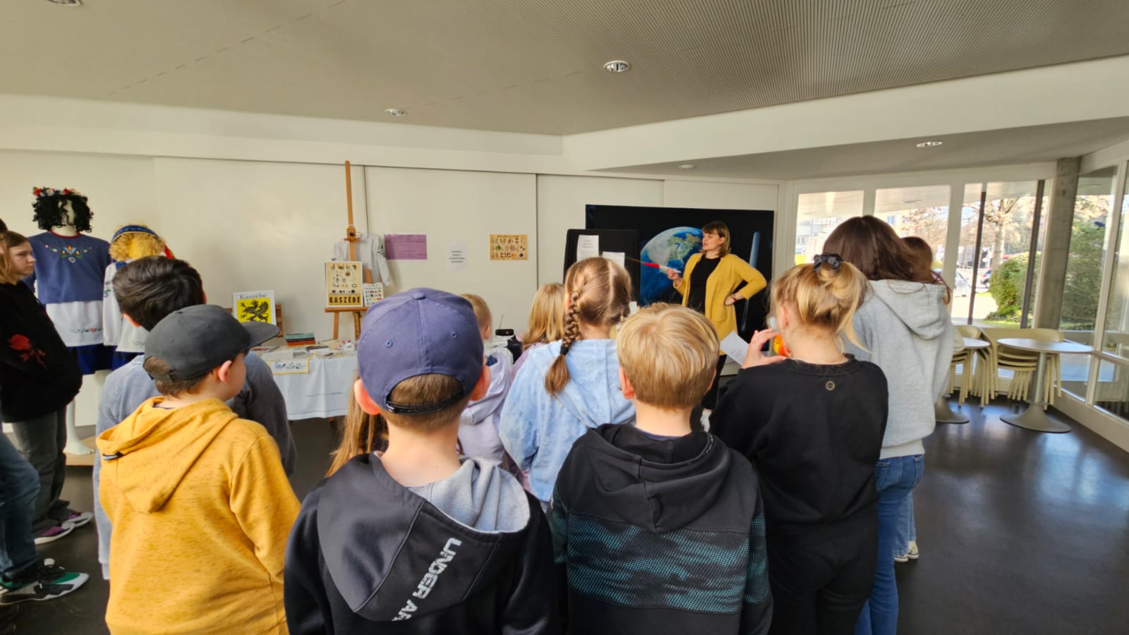 Dzieci dowiedziały się, dlaczego 19 marca jest ważnym dniem dla Kaszubów, ponieważ właśnie tego dnia 1238 roku papież zatytułował szczecińskiego księcia „księciem Kaszub”. Była to prawdopodobnie pierwsza historyczna wzmianka o Kaszubach. Uczniowie poznali cechy języka kaszubskiego oraz ciekawostki na temat tego regionu Polski. Mogli też podziwiać m.in. tradycjne kaszubskie stroje, książki w języku kaszubskim, pięknie haftowane serwety oraz porcelanę.